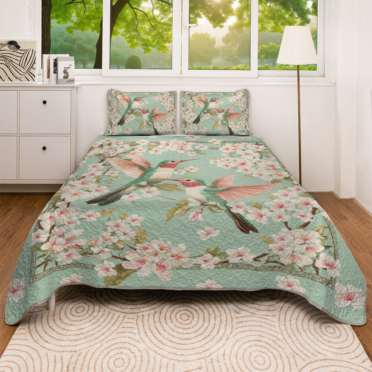 Shineful All Season Quilt 3-Piece Set Hummingbird Floral Haven