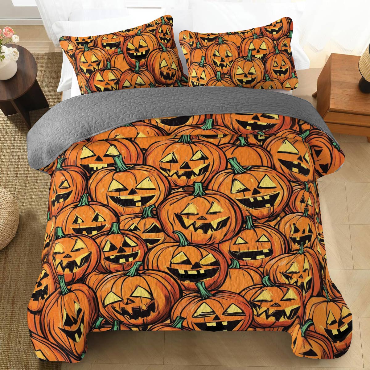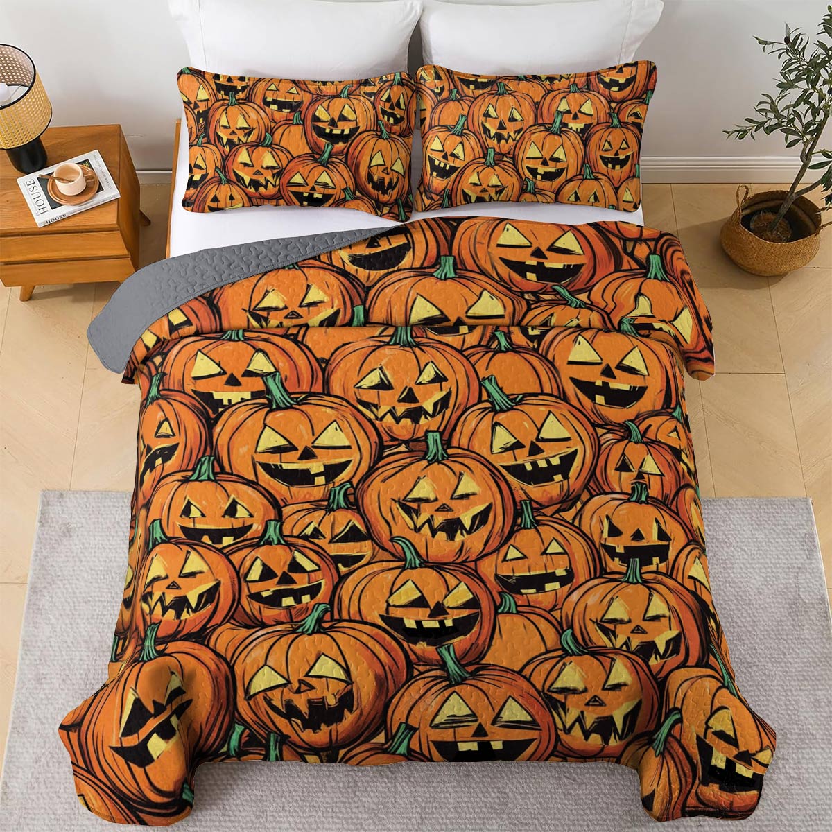 Shineful All Season Quilt 3-Piece Set Jack-o'-Lantern Nights