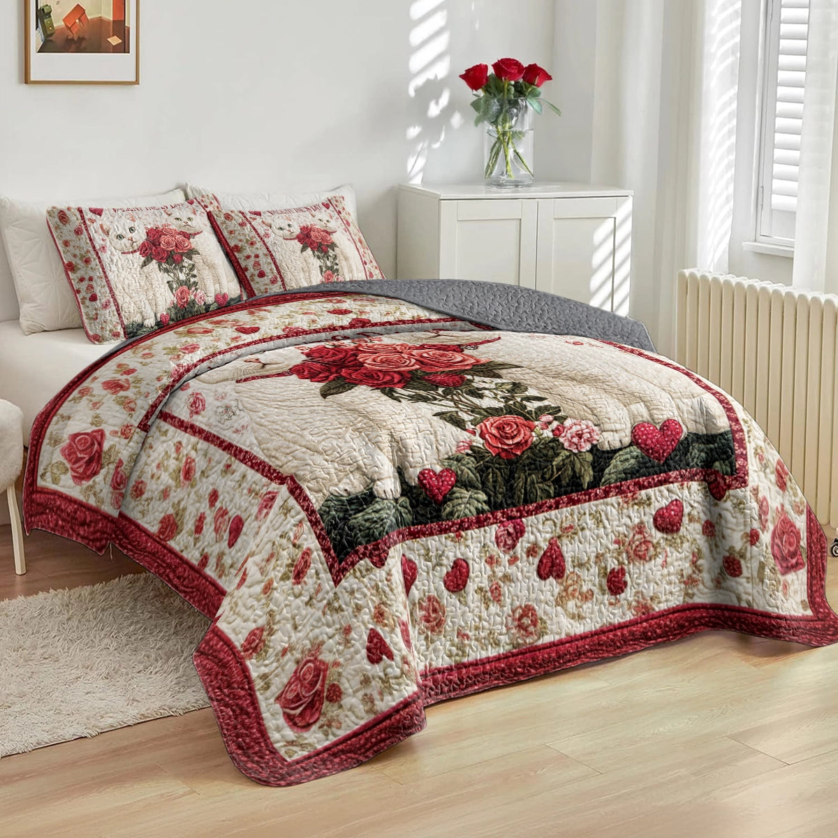 Shineful All Season Quilt 3-Piece Set Lovely Cats Valentine