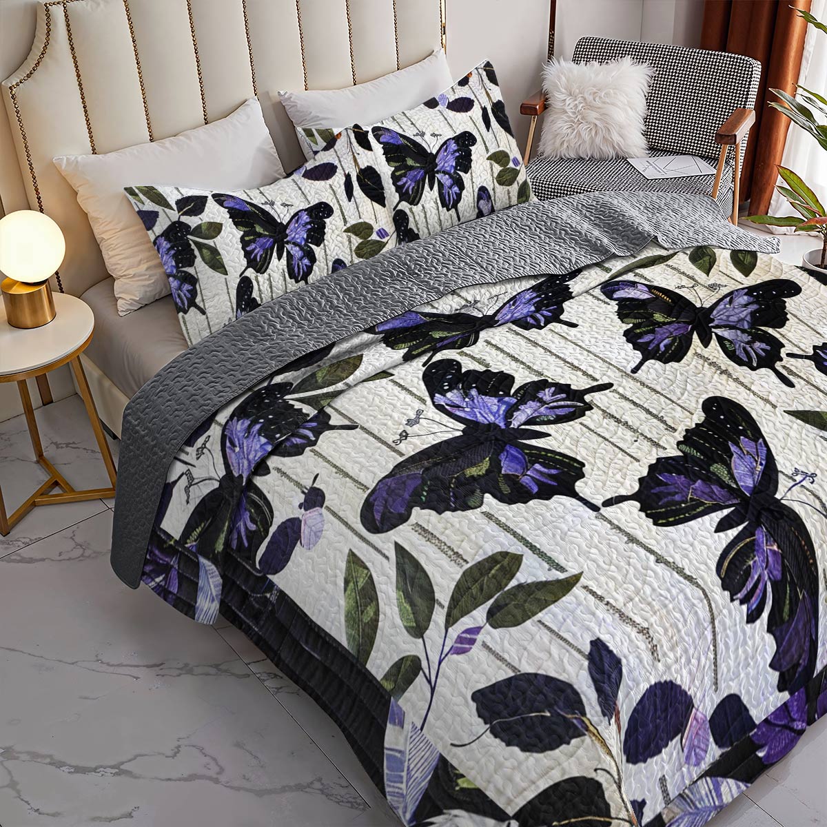 Shineful All Season Quilt 3-Piece Set Magnificent Butterflies Lovely