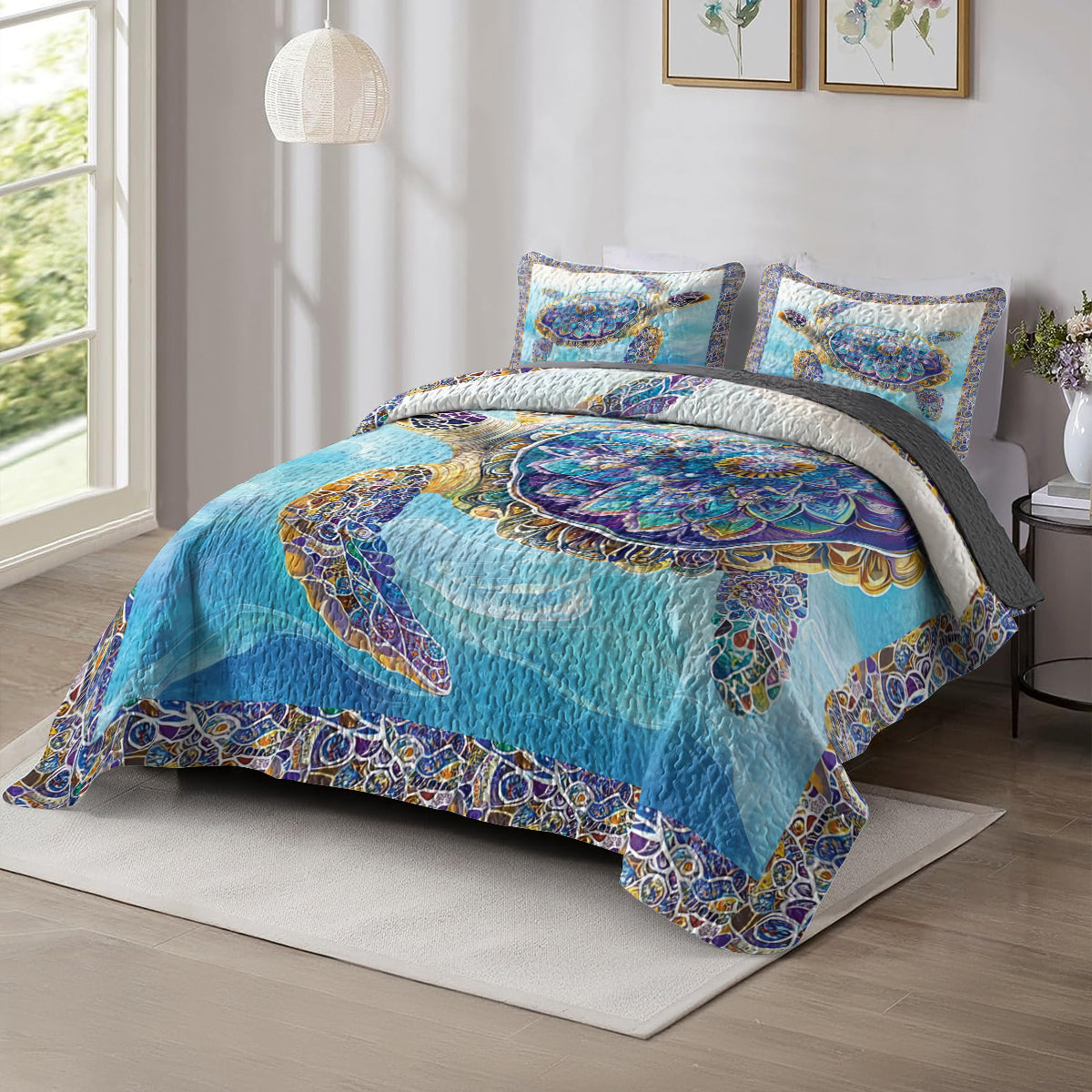 Shineful All Season Quilt 3 - Piece Set Mandala Turtle