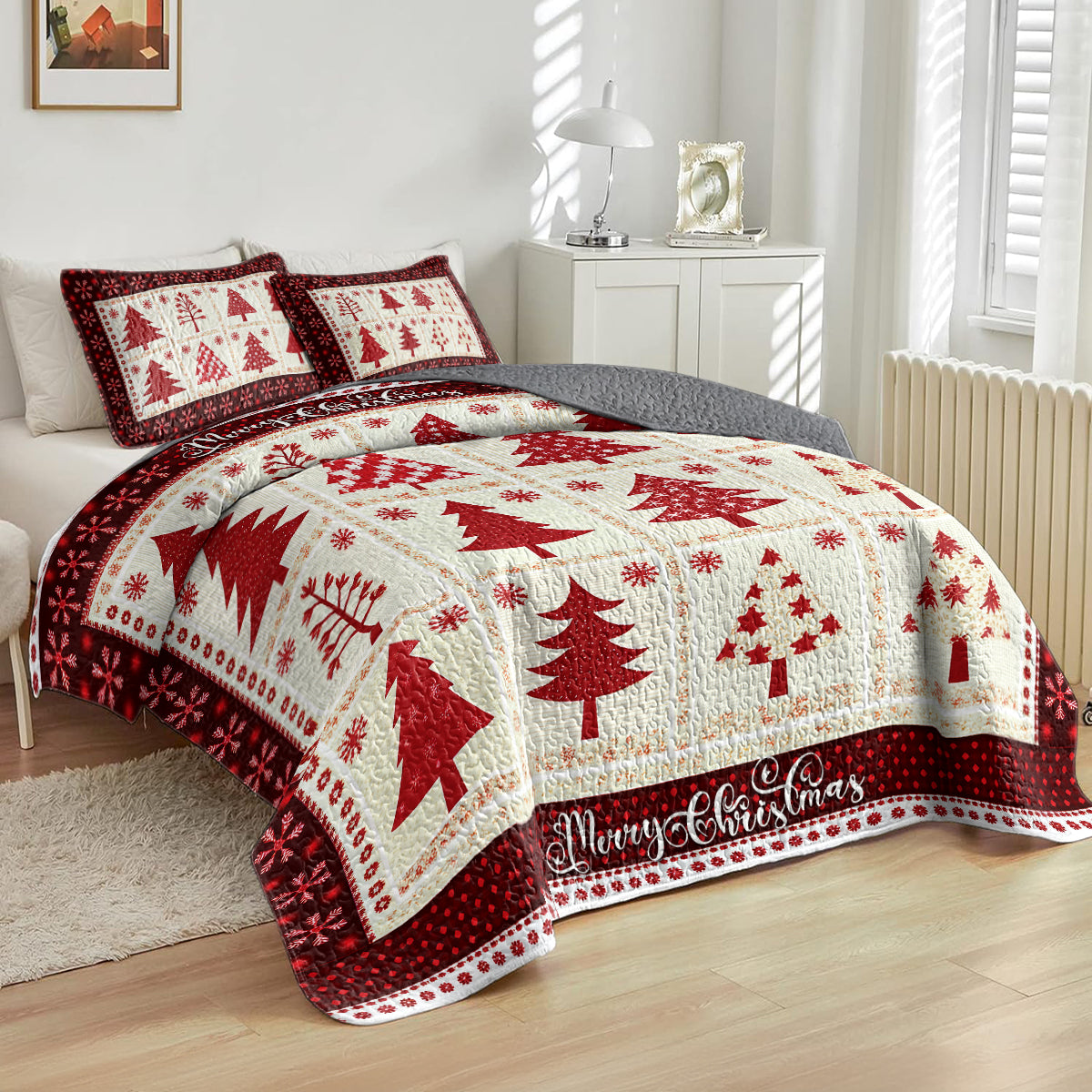 Shineful All Season Quilt 3-Piece Set - Merry Christmas Tree Patchwork
