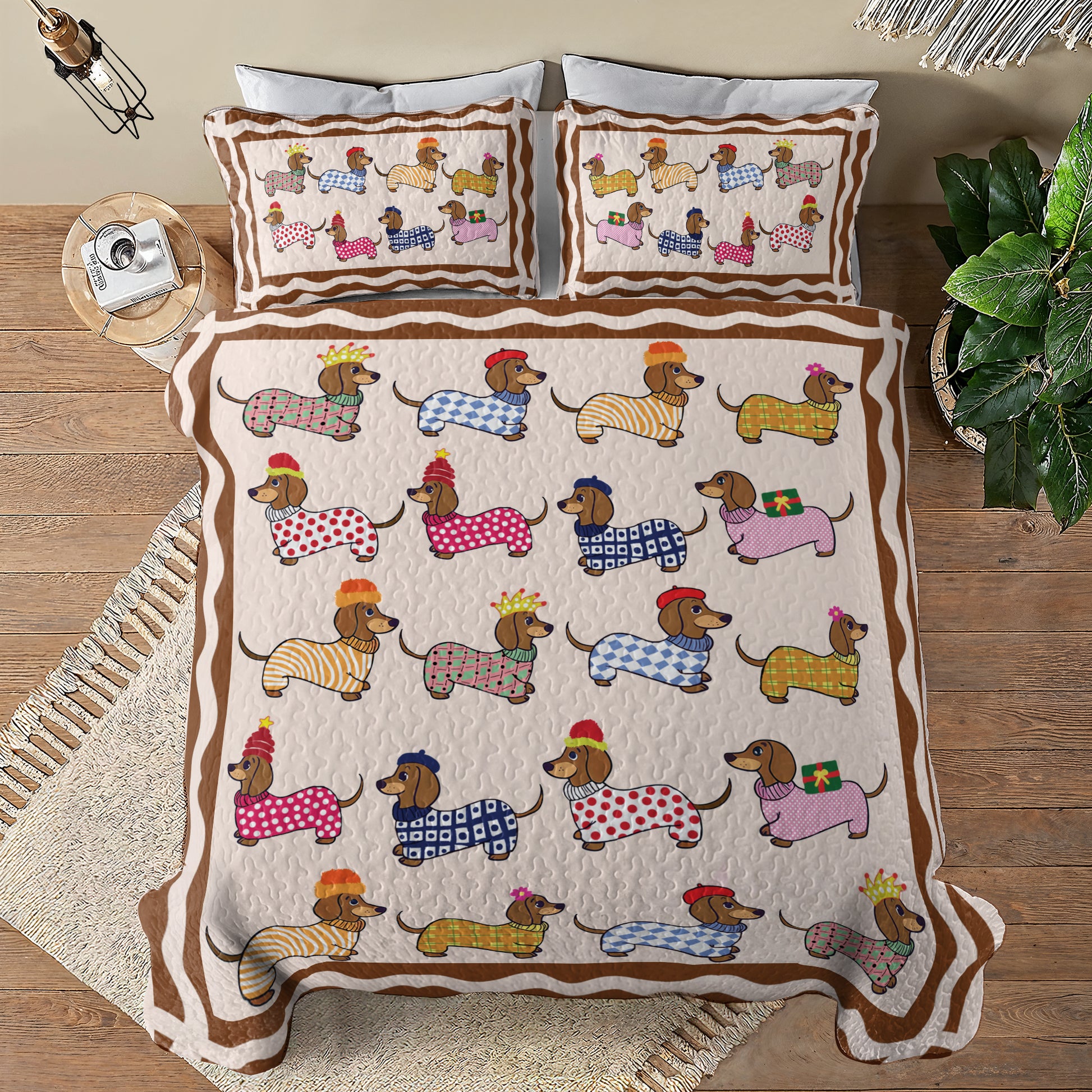Shineful All Season Quilt 3-Piece Set - Mischievous Dachshunds