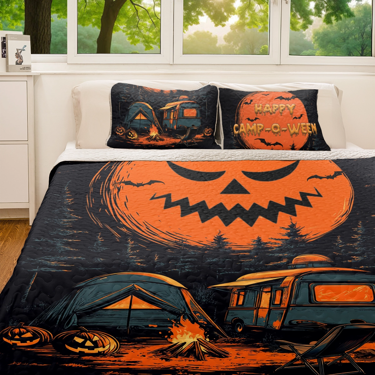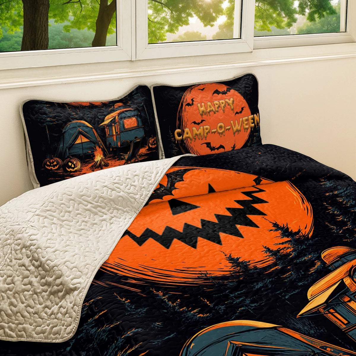 Shineful All Season Quilt 3-Piece Set - Moonlit Halloween Camping