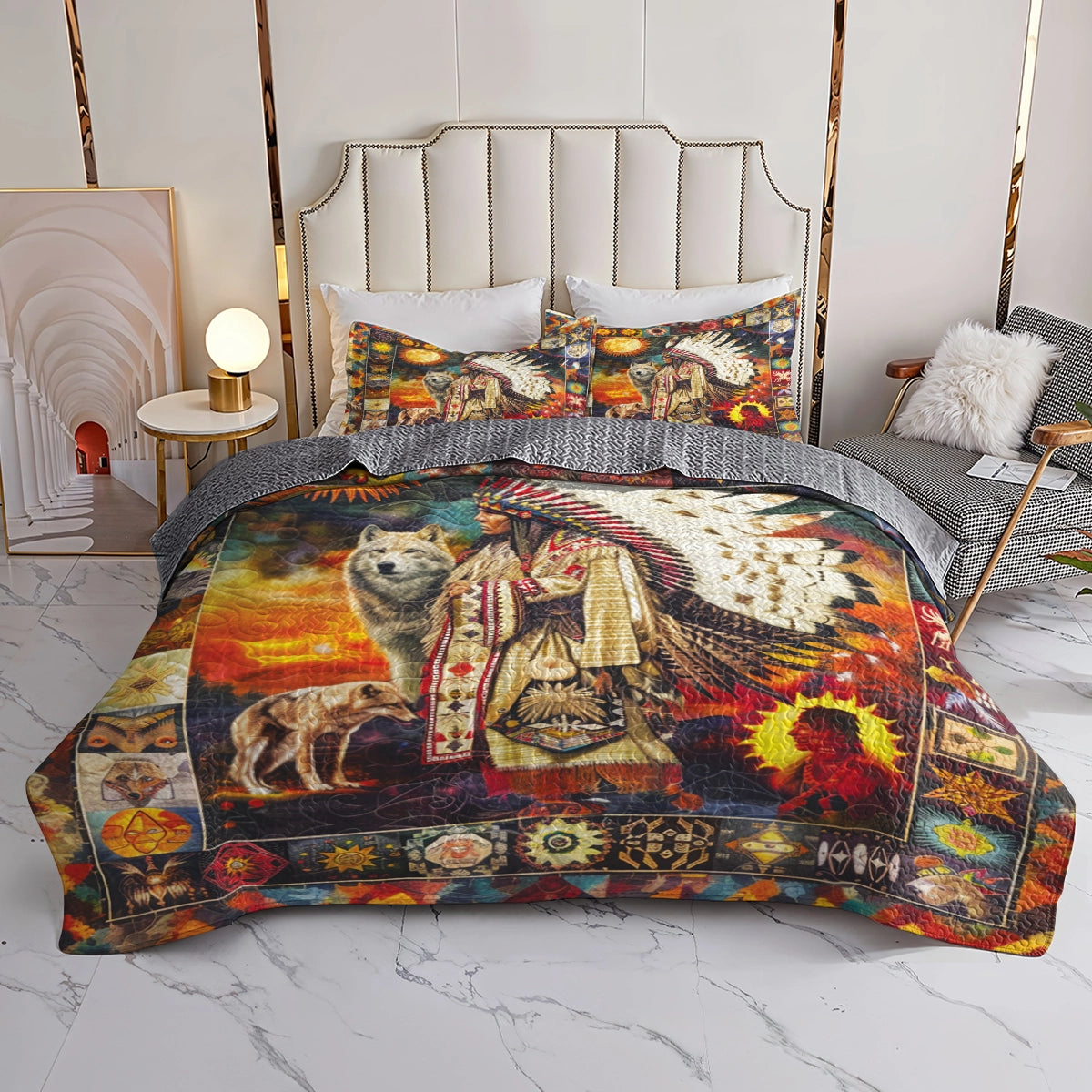 Shineful All Season Quilt 3-Piece Set - Native America Warrior