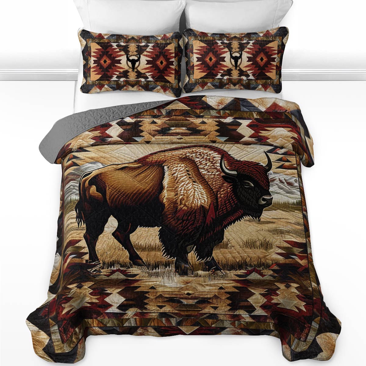 Shineful All Season Quilt 3-Piece Set Native American Bison