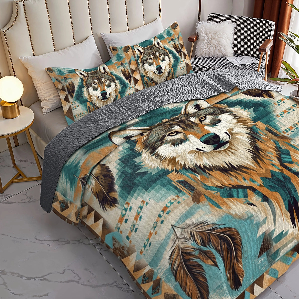 Shineful All Season Quilt 3-Piece Set Native American Wild Spirit