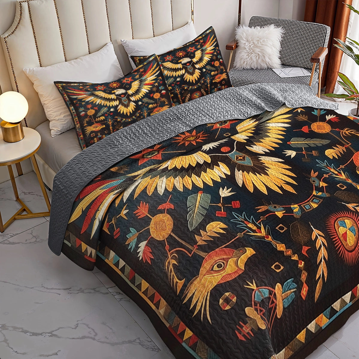 Shineful All Season Quilt 3-Piece Set - Native Eagle Ancient Totem