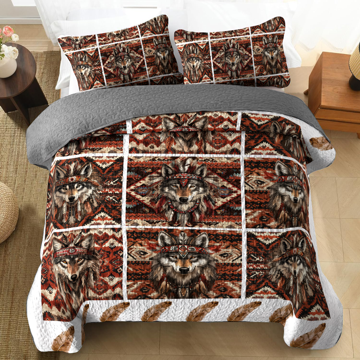 Shineful All Season Quilt 3-Piece Set - Native Wolf Pattern