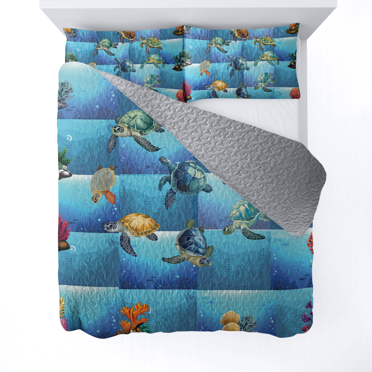 Shineful All Season Quilt 3-Piece Set - Ocean Harmony Sea Turtle Pattern