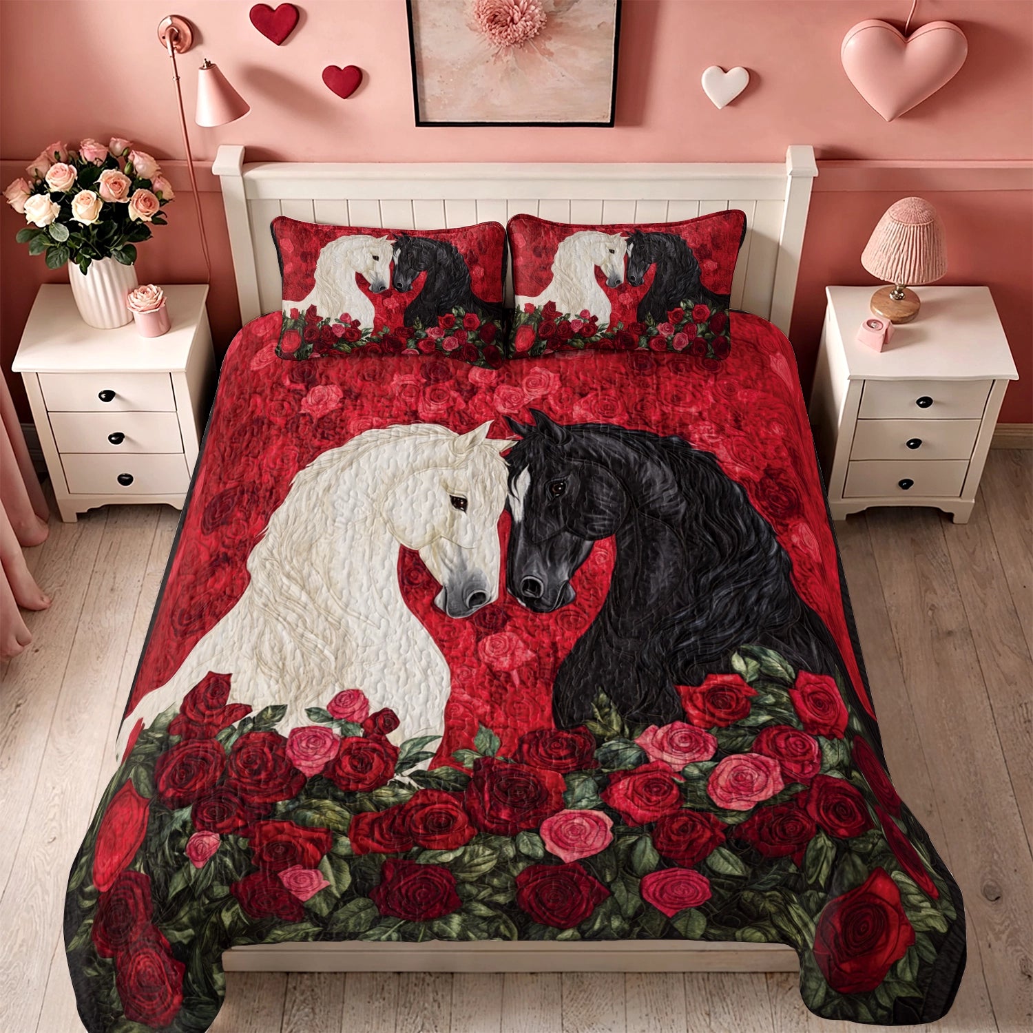 Shineful All Season Quilt 3-Piece Set Passionate Rose Horse