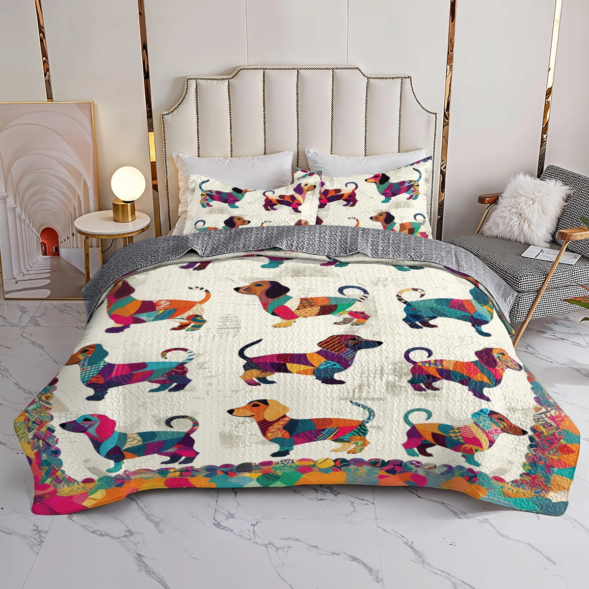 Shineful All Season Quilt 3-Piece Set Patchwork Dachshund Dreams