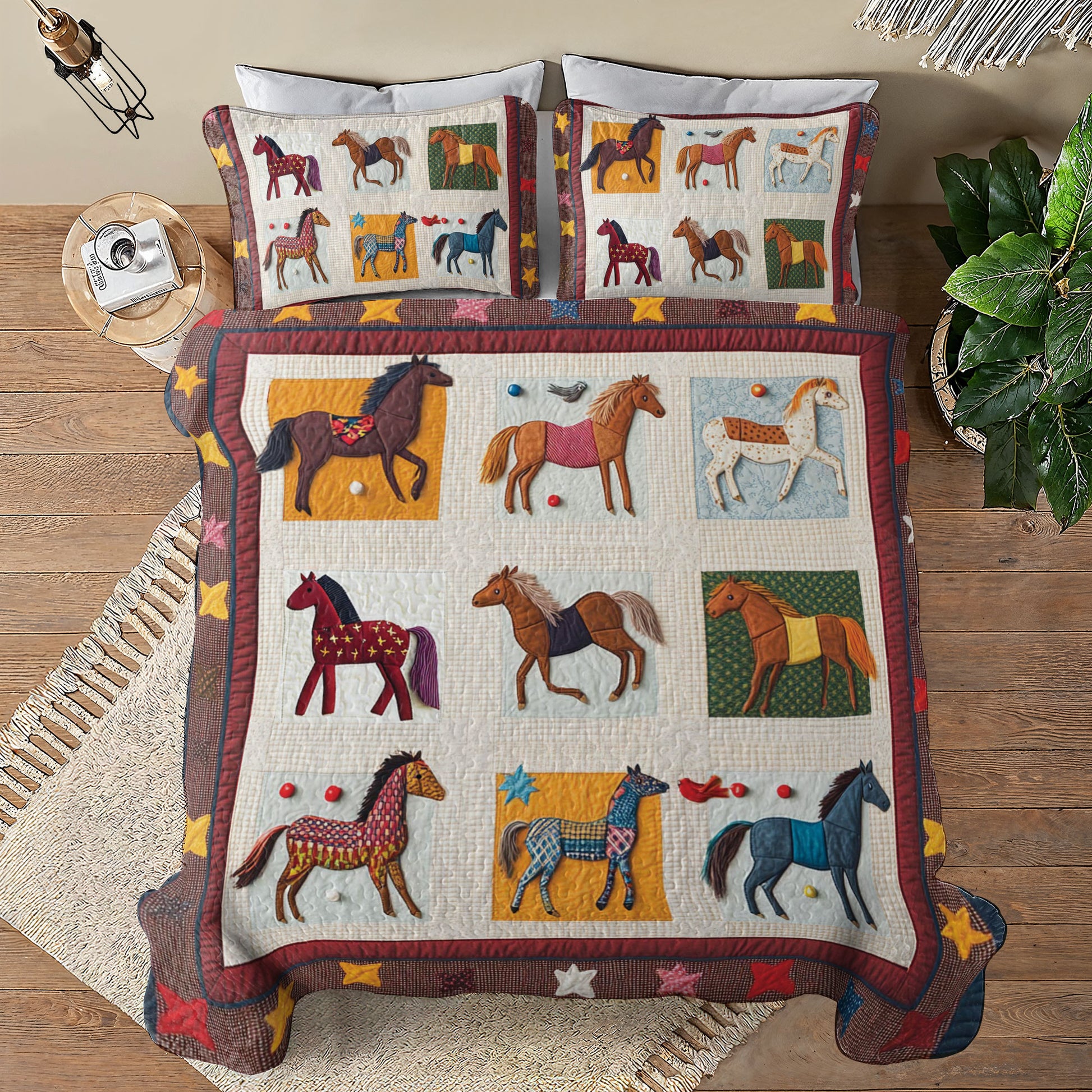 Shineful All Season Quilt 3-Piece Set Playful Horses