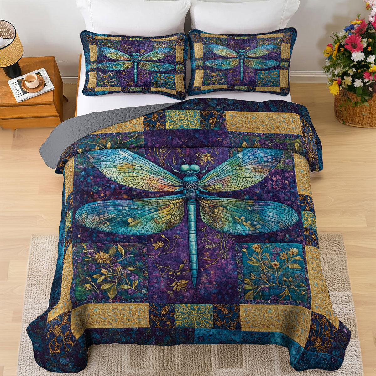 Shineful All Season Quilt 3-Piece Set Pretty Dragonfly