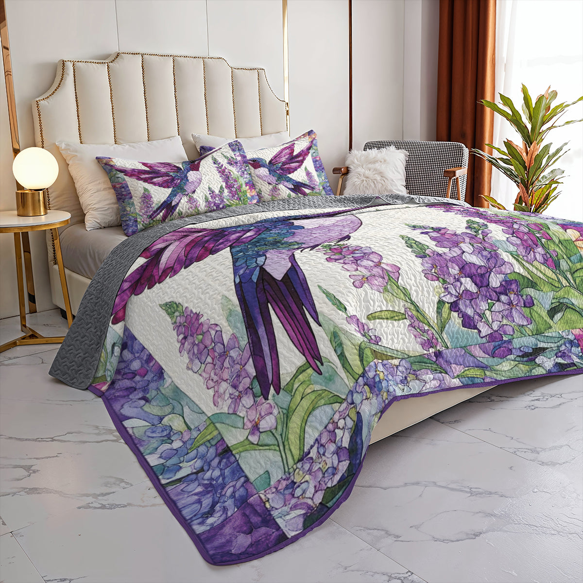 Shineful All Season Quilt 3-Piece Set Purple and Pink Hummingbird