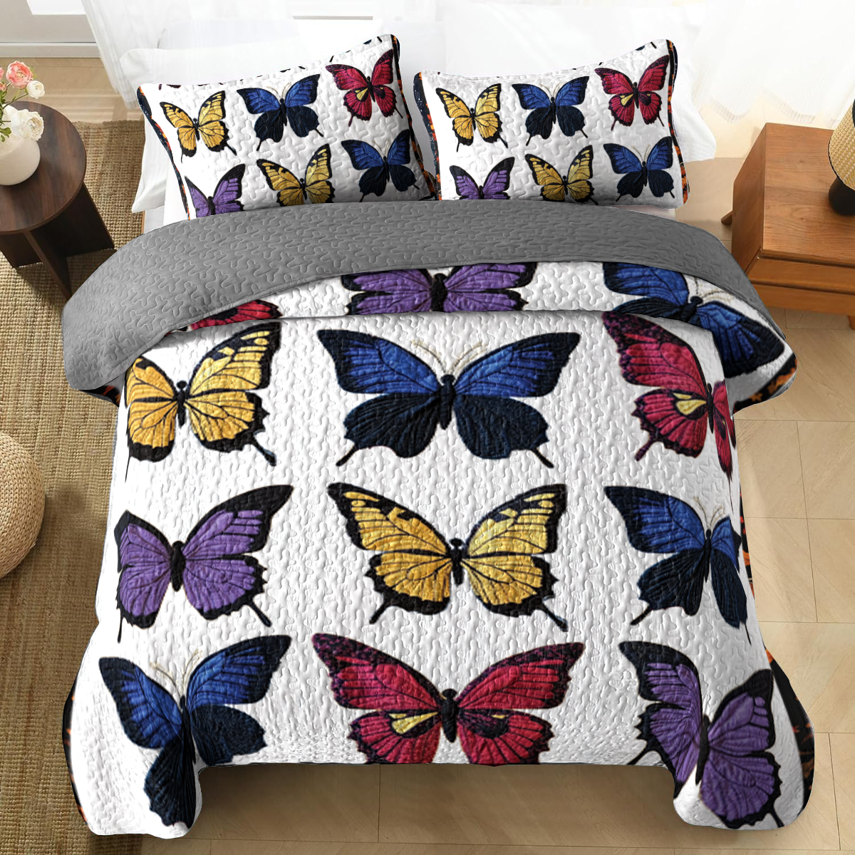 Shineful All Season Quilt 3-Piece Set - Purple Butterfly Bliss