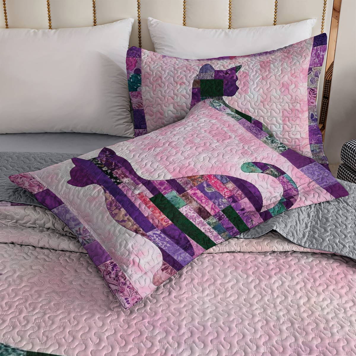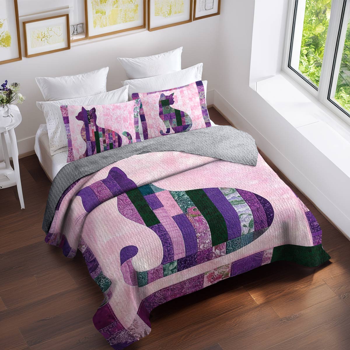 Shineful All Season Quilt 3-Piece Set Purple Cat