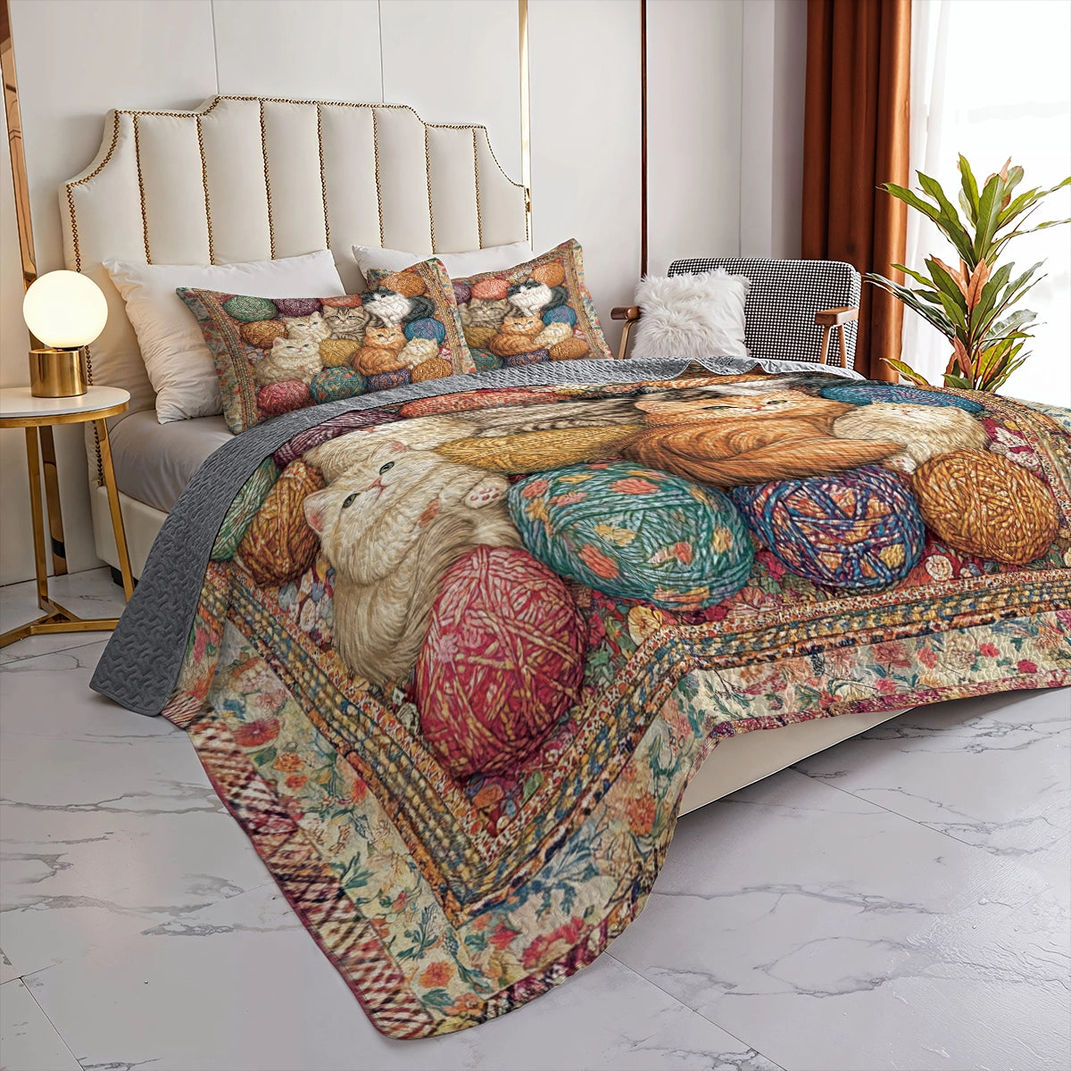Shineful All Season Quilt 3-Piece Set - Purrfect Yarn Cat