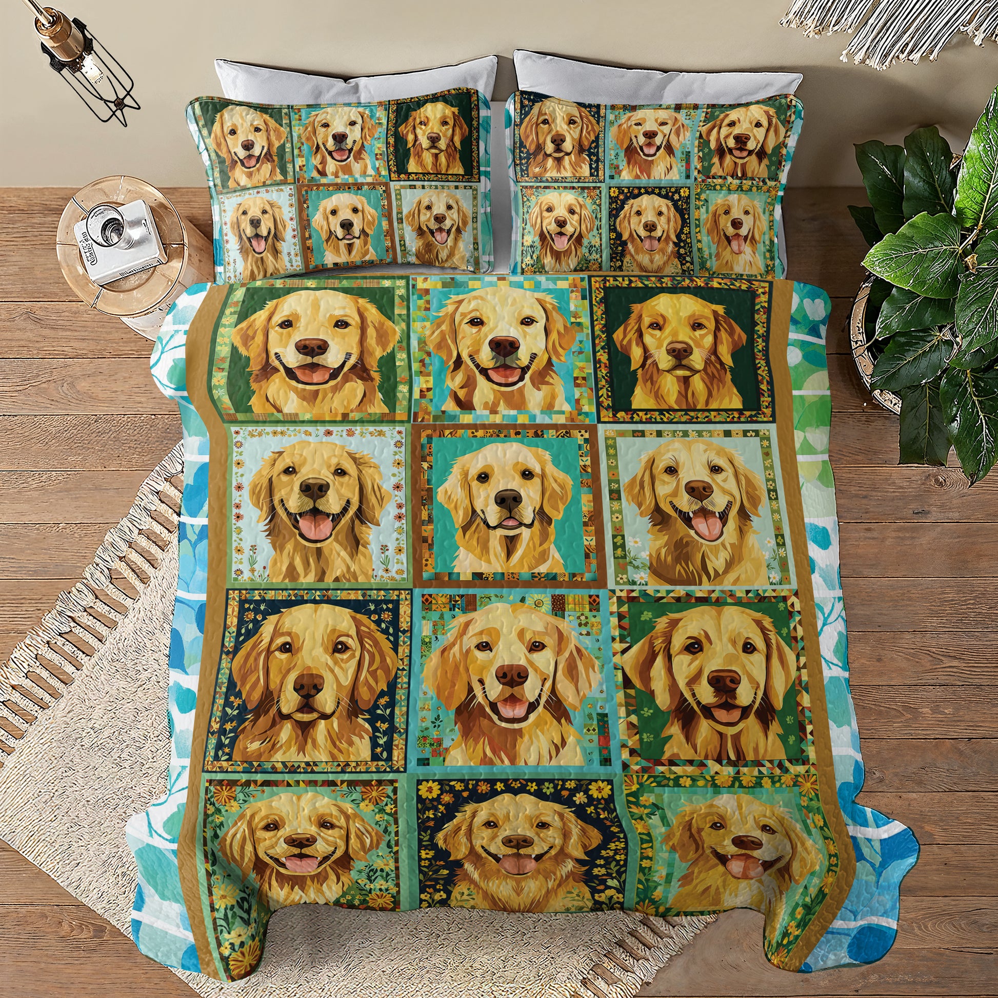 Shineful All Season Quilt 3-Piece Set - Radiant Golden Retriever Smiles