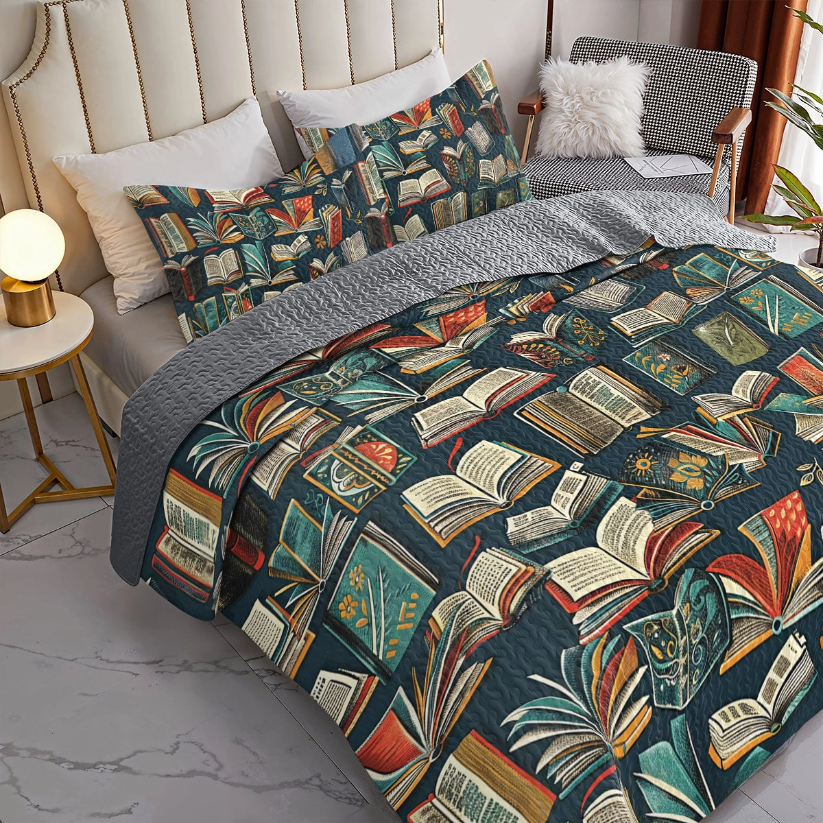 Shineful All Season Quilt 3-Piece Set Reading Enchanted Library