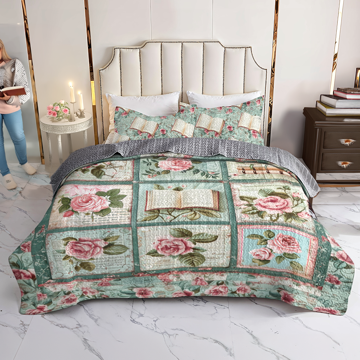 Shineful All Season Quilt 3-Piece Set Romantic Literary Blooms