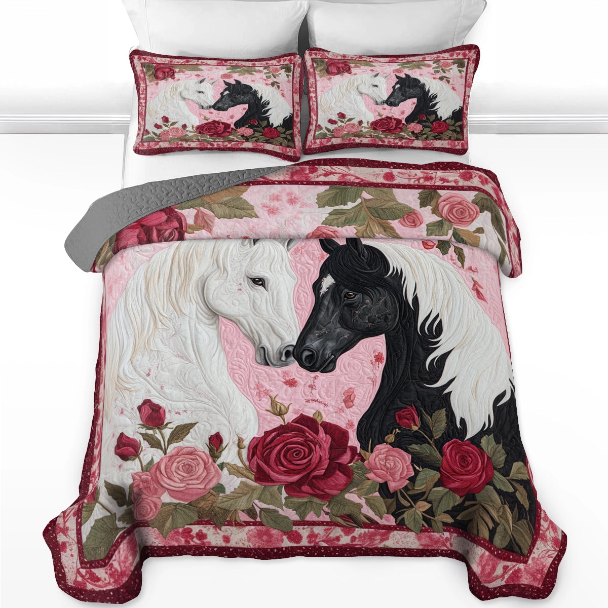 Shineful All Season Quilt 3-Piece Set Romantic Rose Horse