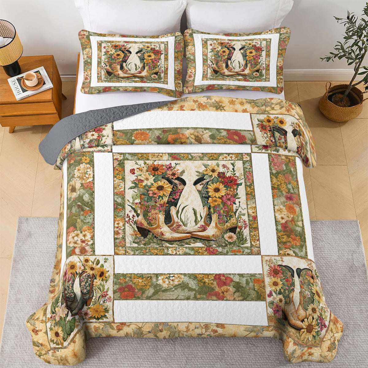 Shineful All Season Quilt 3-Piece Set Rustic Cowboy Boot