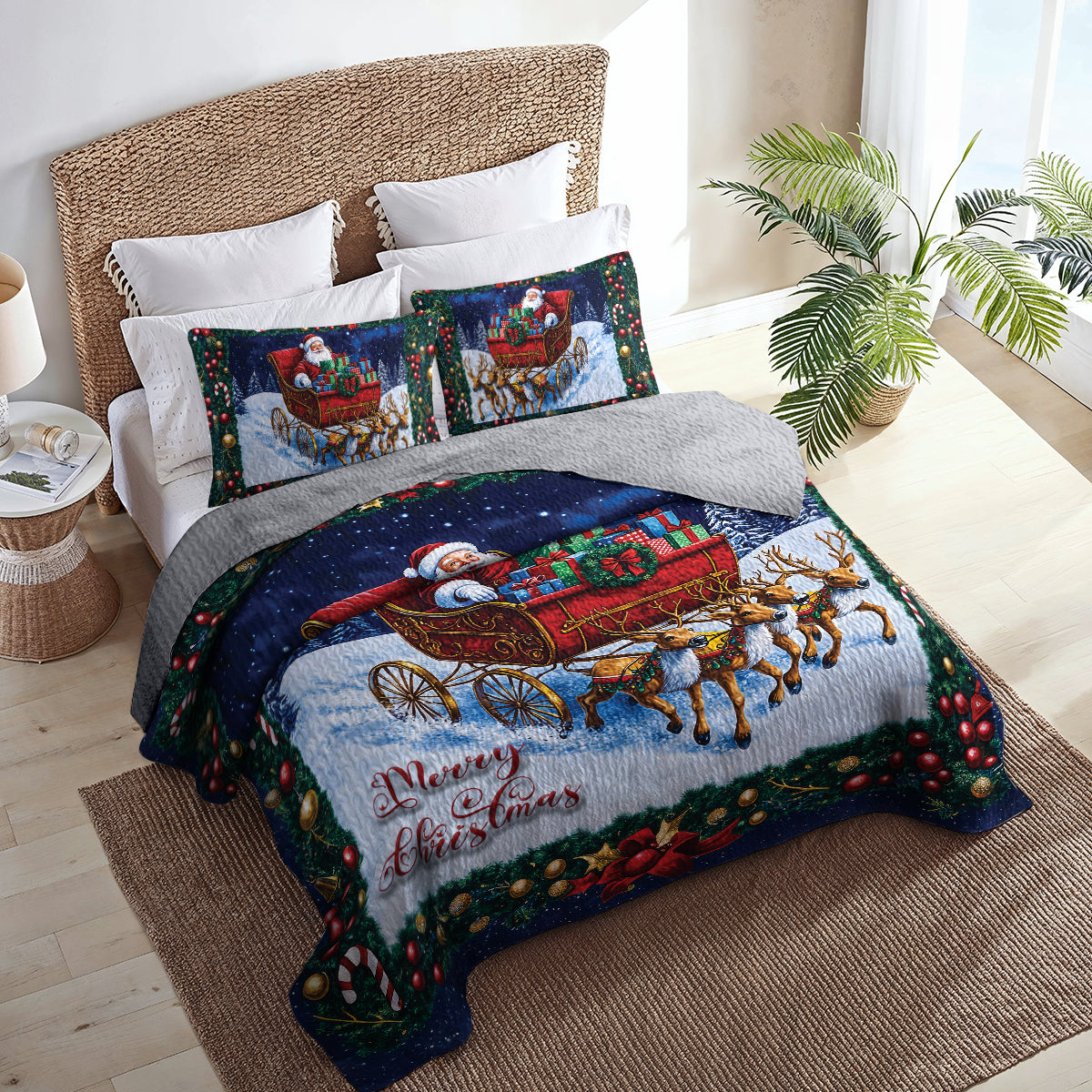 Shineful All Season Quilt 3-Piece Set - Santa's Sleigh Ride Christmas Quilt
