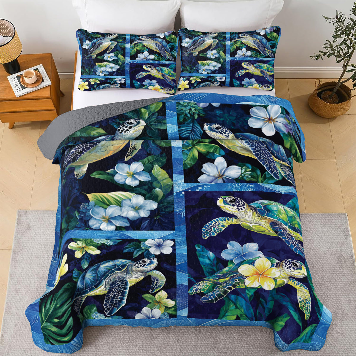 Shineful All Season Quilt 3-Piece Set Sea Turtle And Plumeria