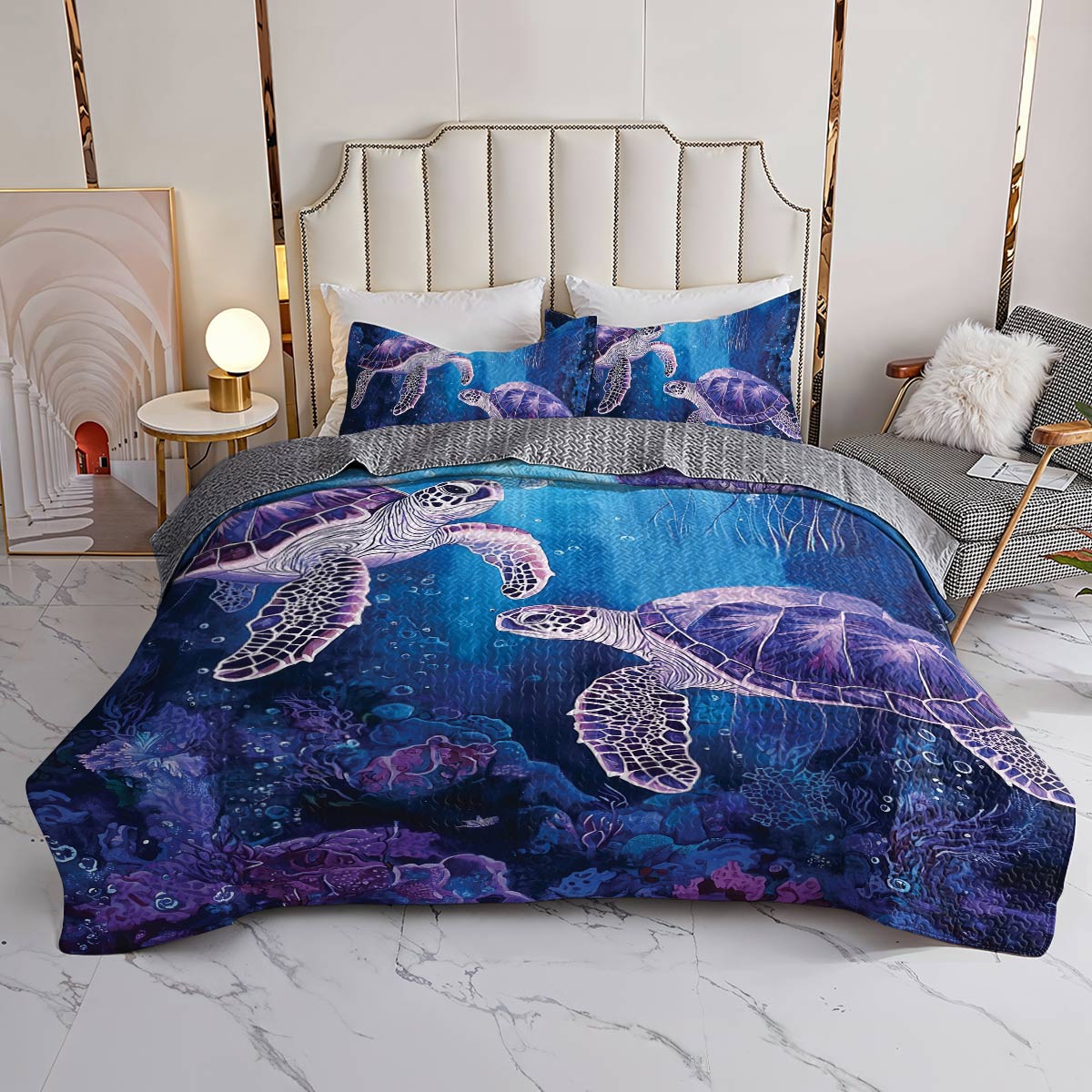 Shineful All Season Quilt 3-Piece Set - Sea Turtle & Jellyfish Harmony