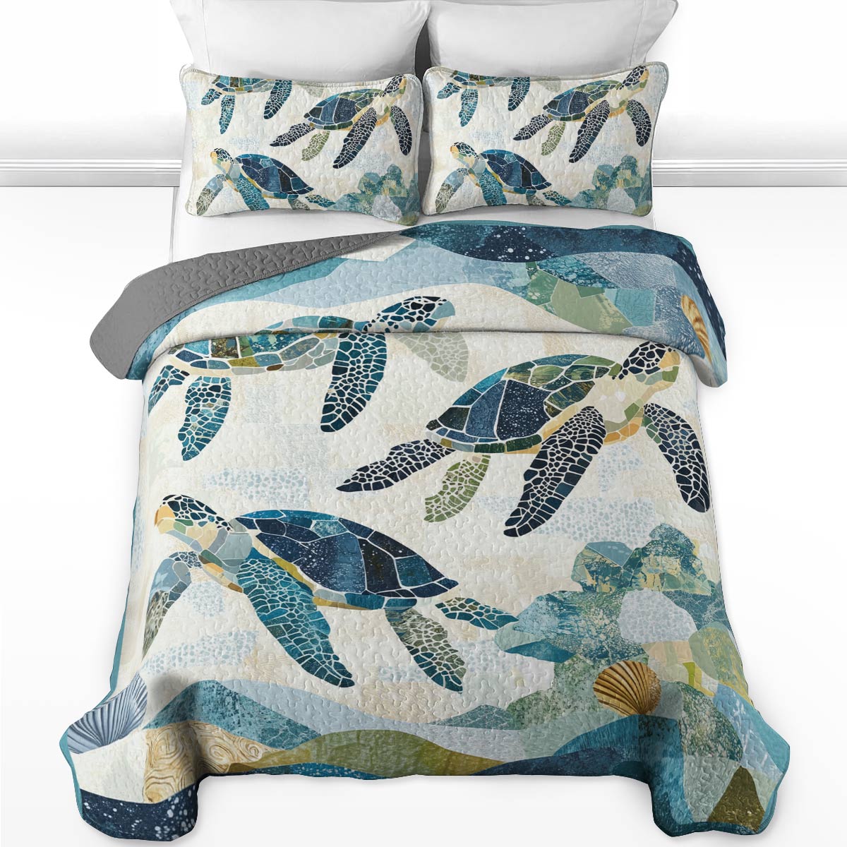 Shineful All Season Quilt 3-Piece Set - Sea Turtle Ocean Harmony