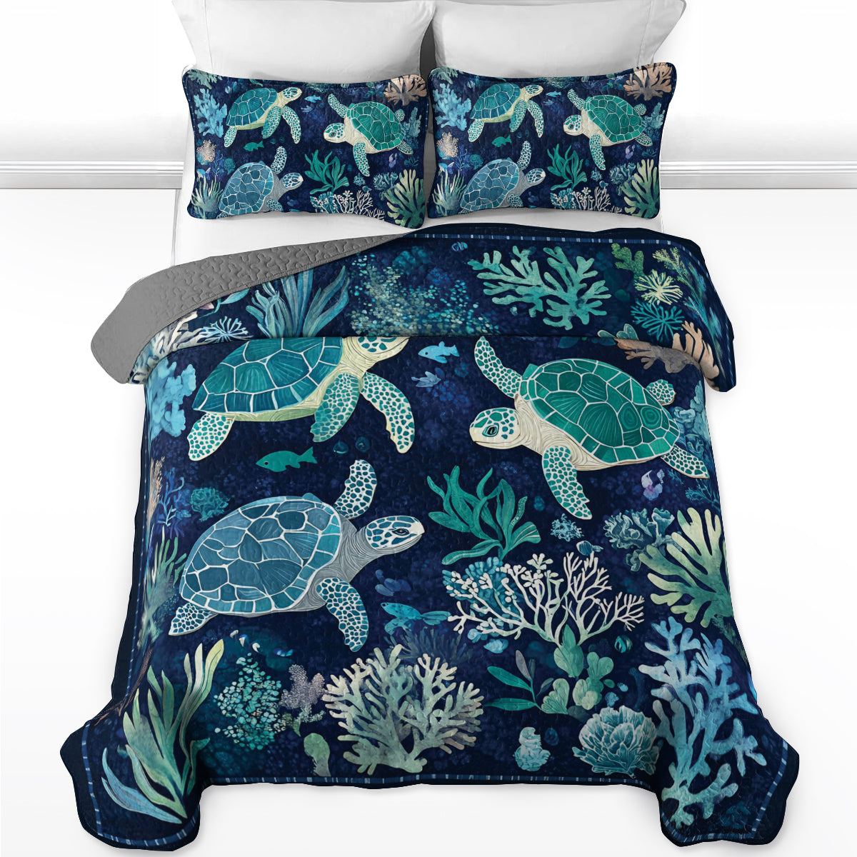 Shineful All Season Quilt 3-Piece Set Sea Turtle Underwater Ballet