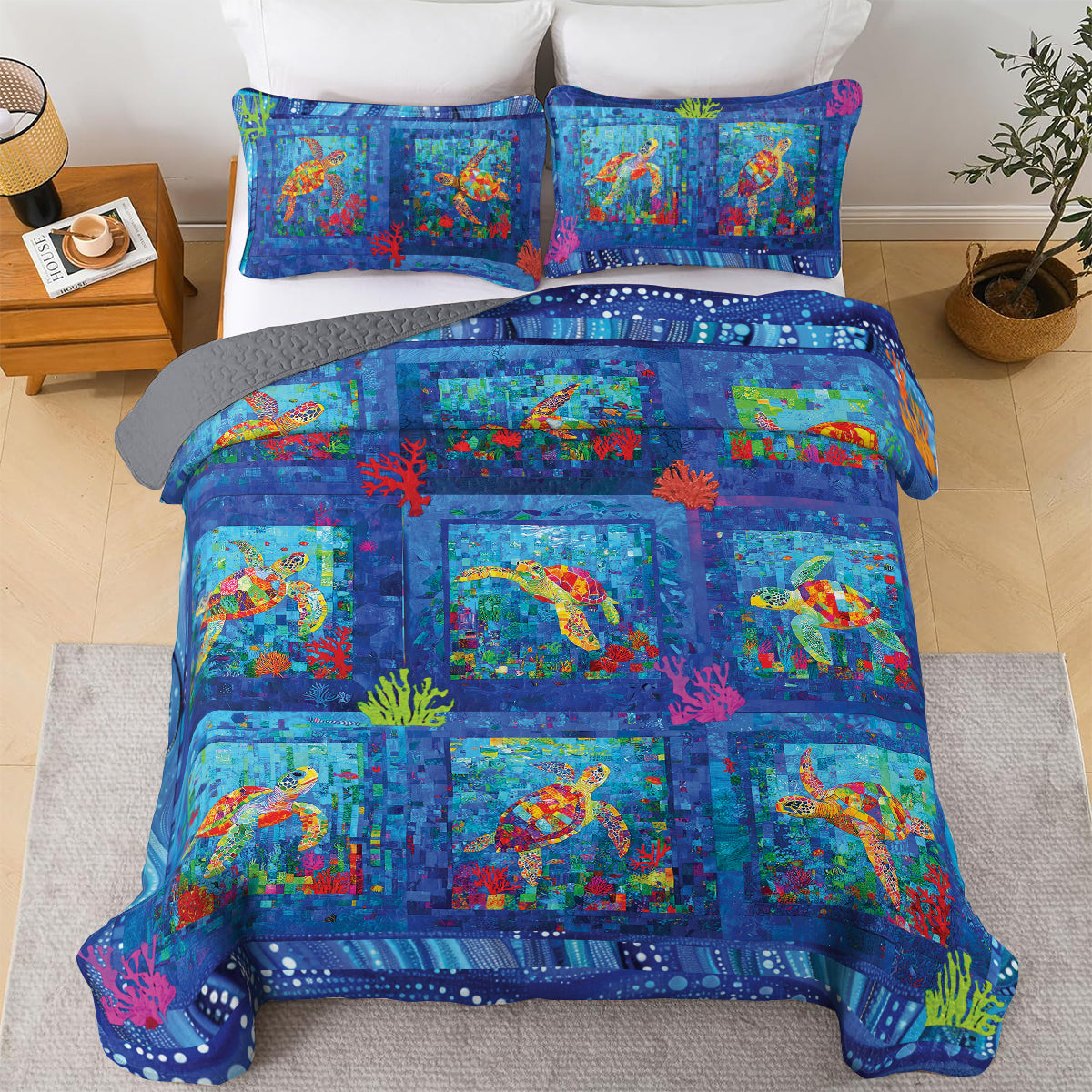 Shineful All Season Quilt 3-Piece Set - Sea Turtle With Lively Ocean Life