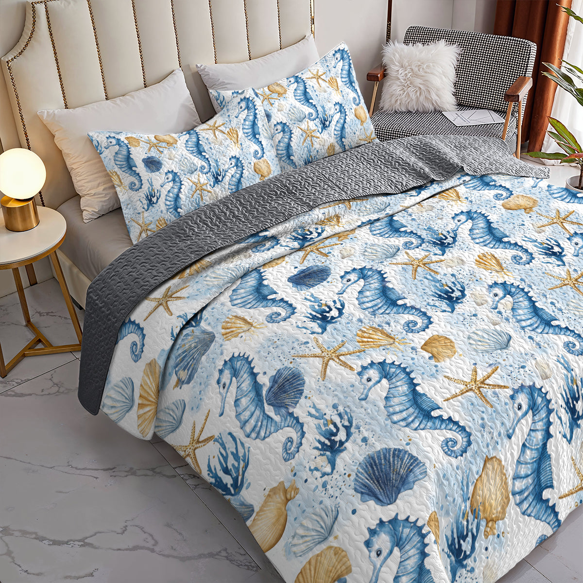 Shineful All Season Quilt 3-Piece Set - Seahorse Ocean Dream Quilt
