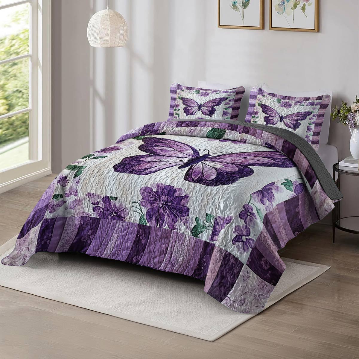 Shineful All Season Quilt 3-Piece Set Secretive Butterflies