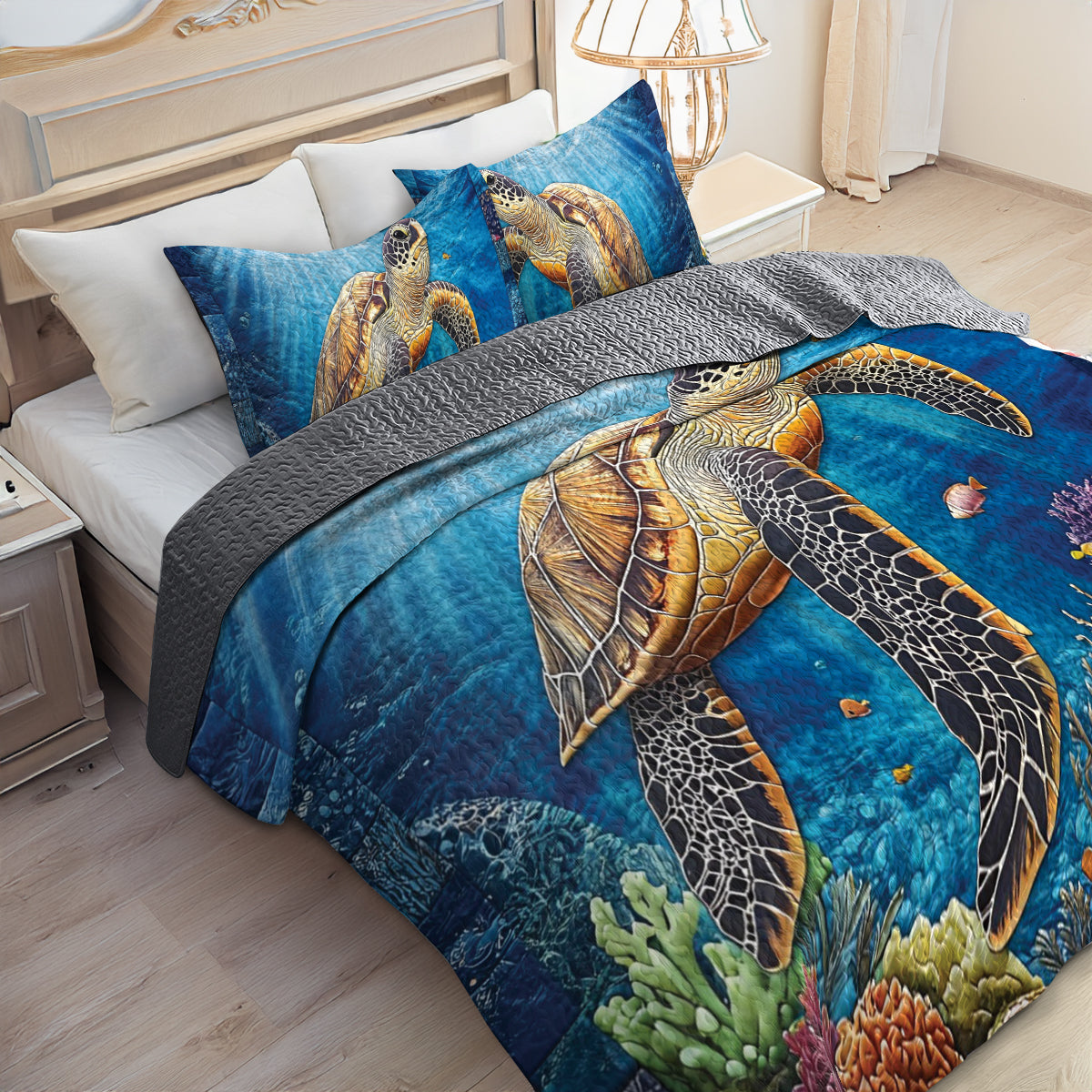 Shineful All Season Quilt 3-Piece Set Serenity Reef Sea Turtle