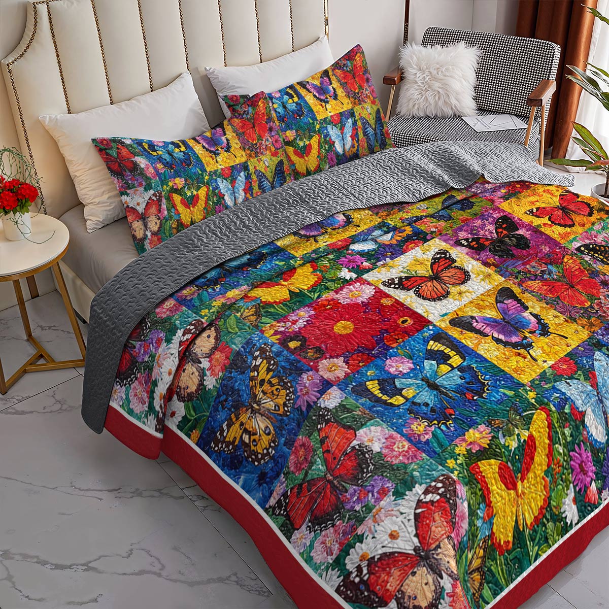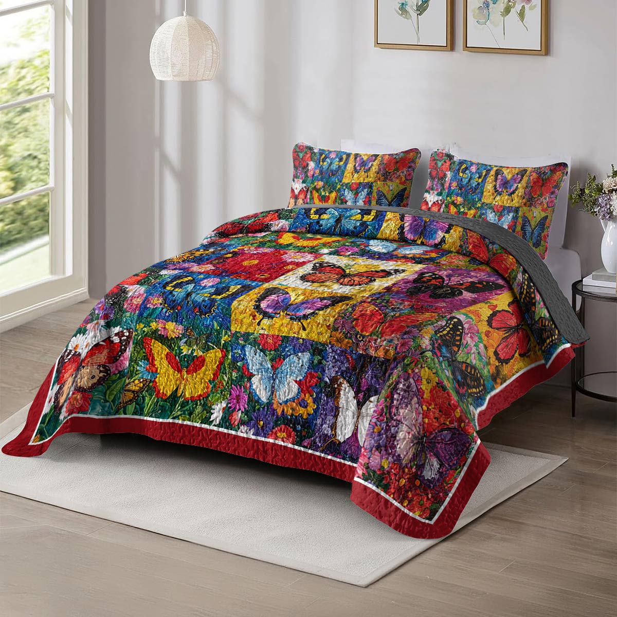 Shineful All Season Quilt 3-Piece Set Splendid Butterflies Flowers