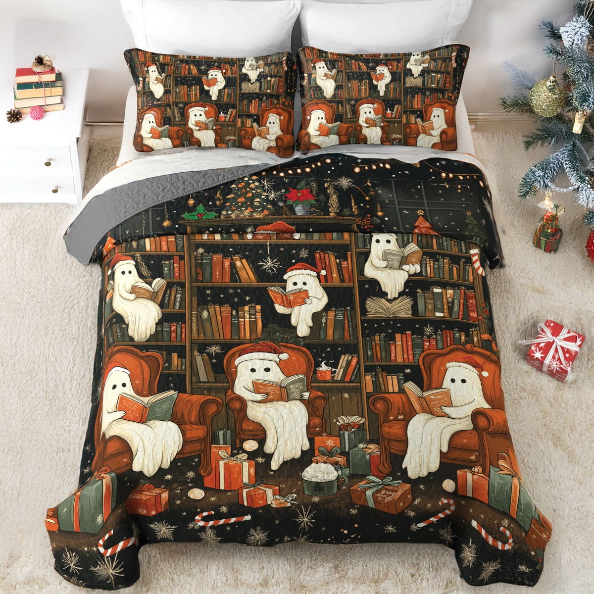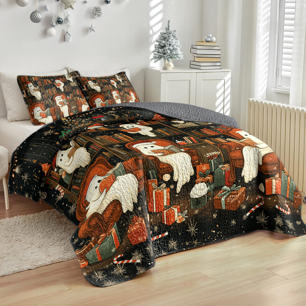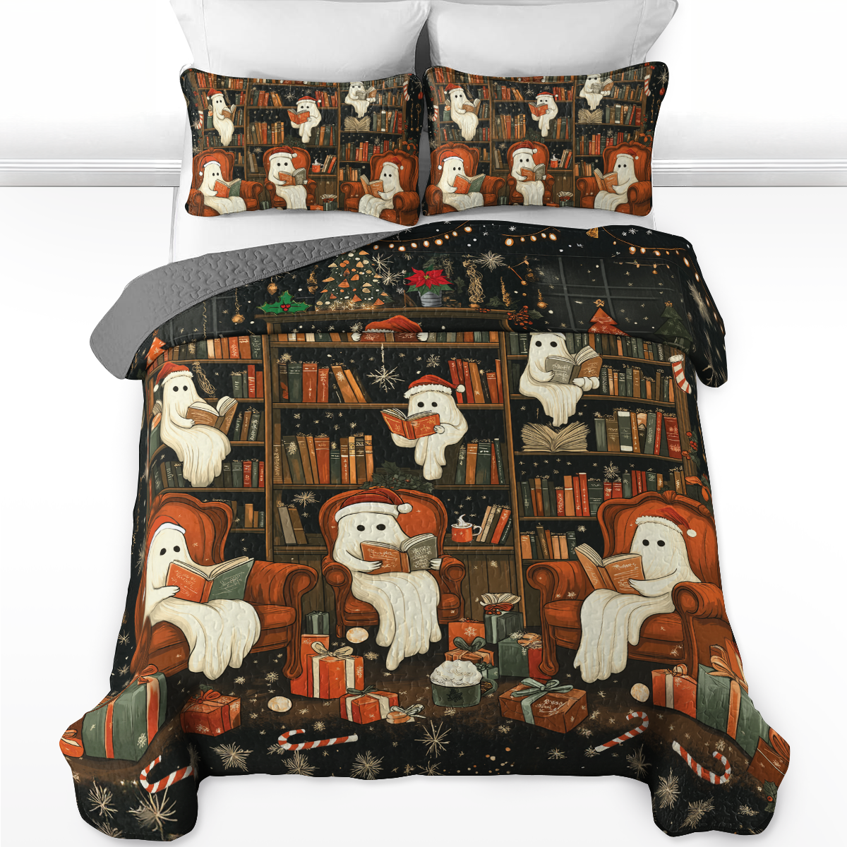 Shineful All Season Quilt 3-Piece Set Spooky Christmas Bookshelf