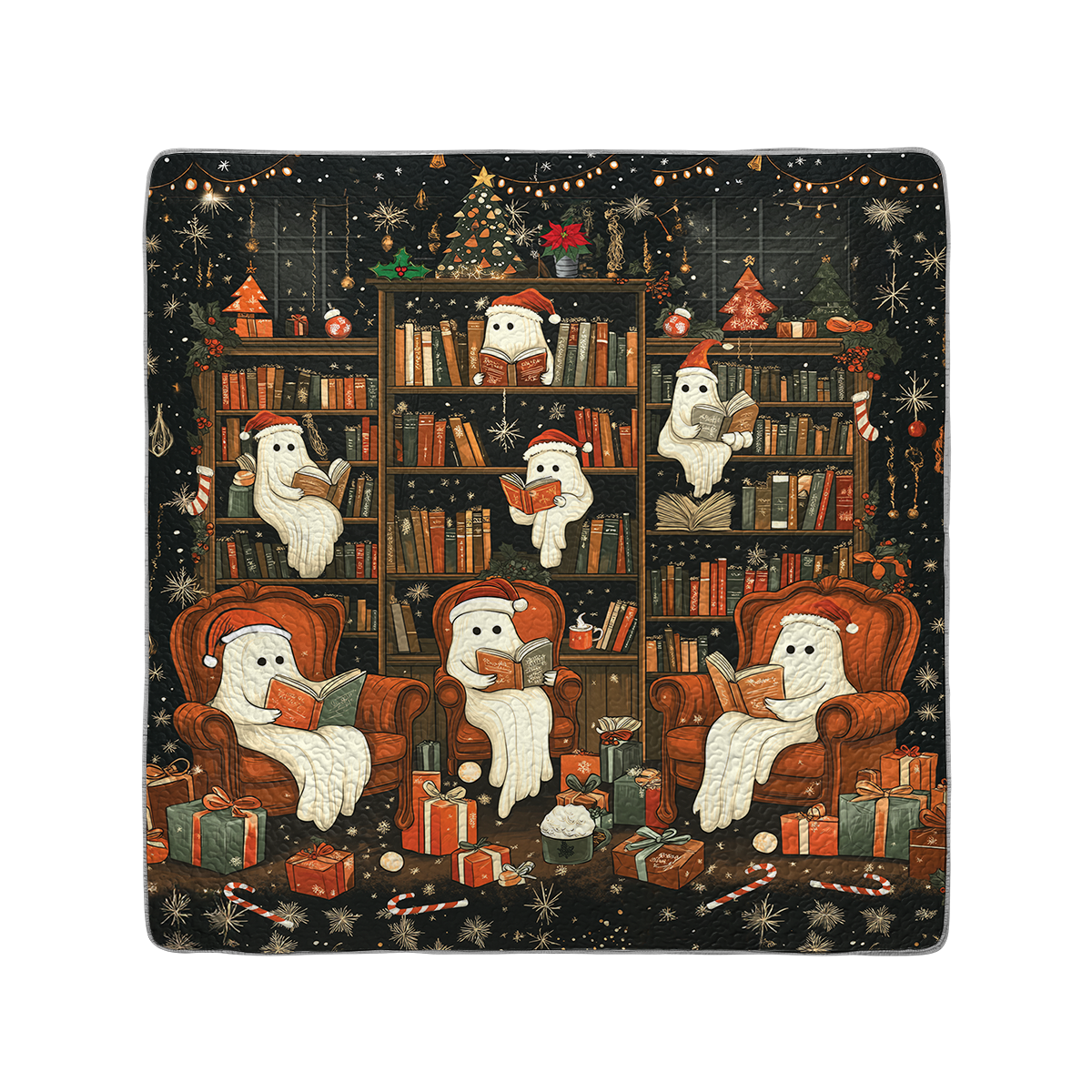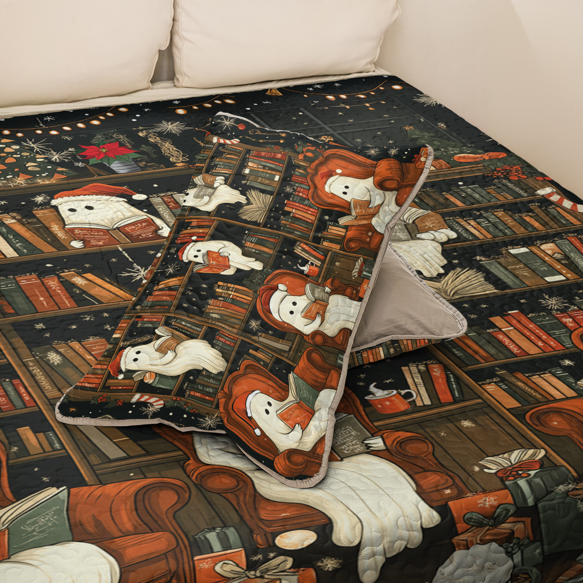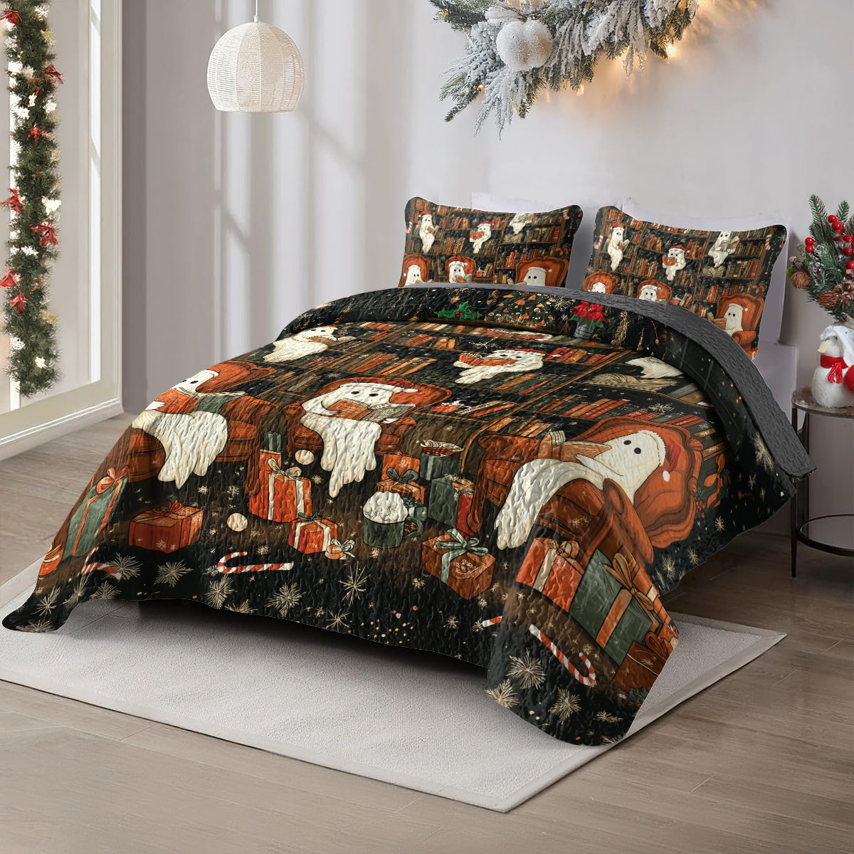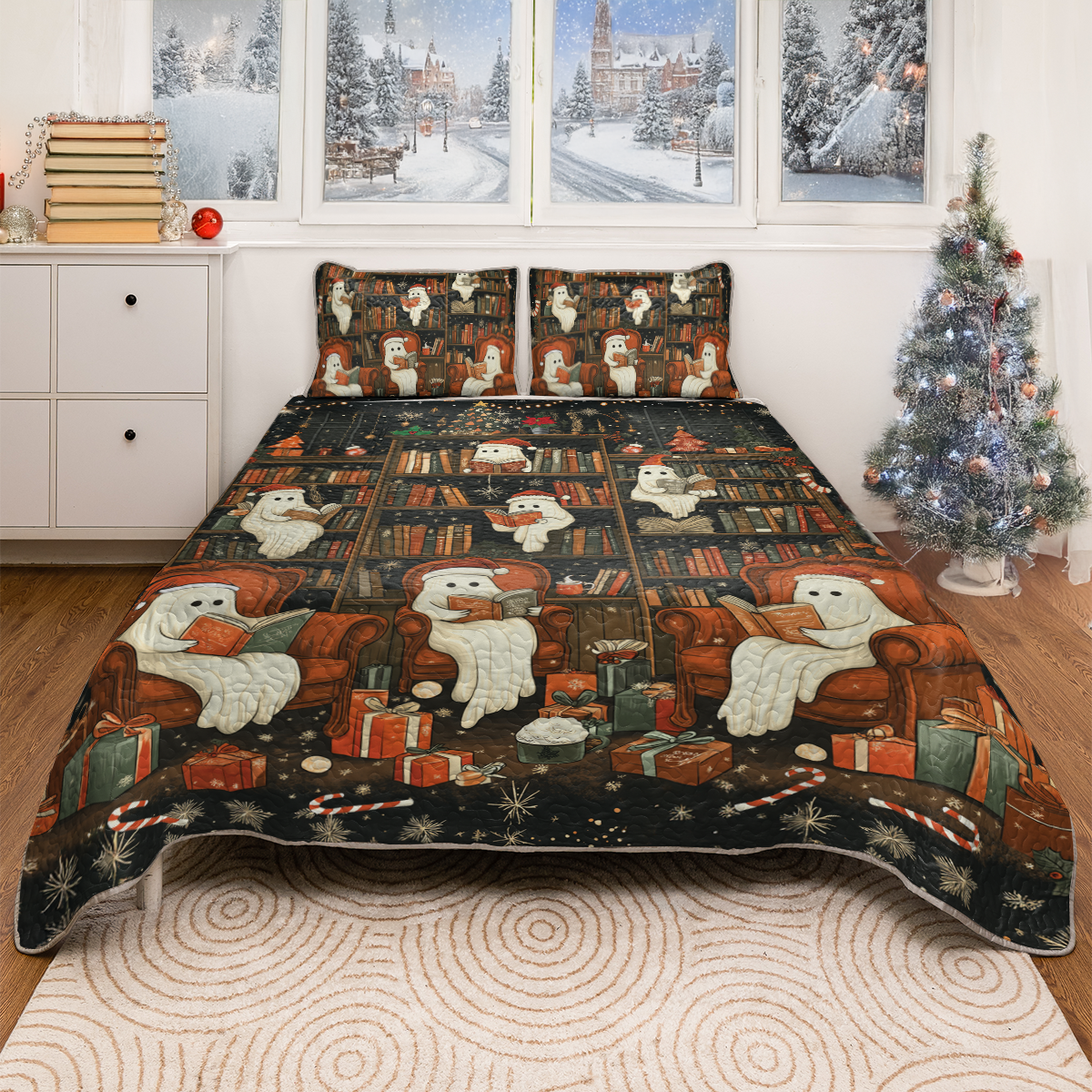 Shineful All Season Quilt 3-Piece Set Spooky Christmas Bookshelf