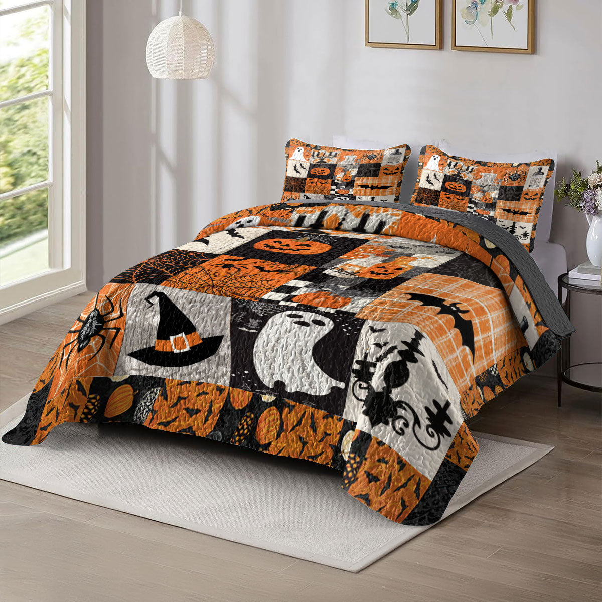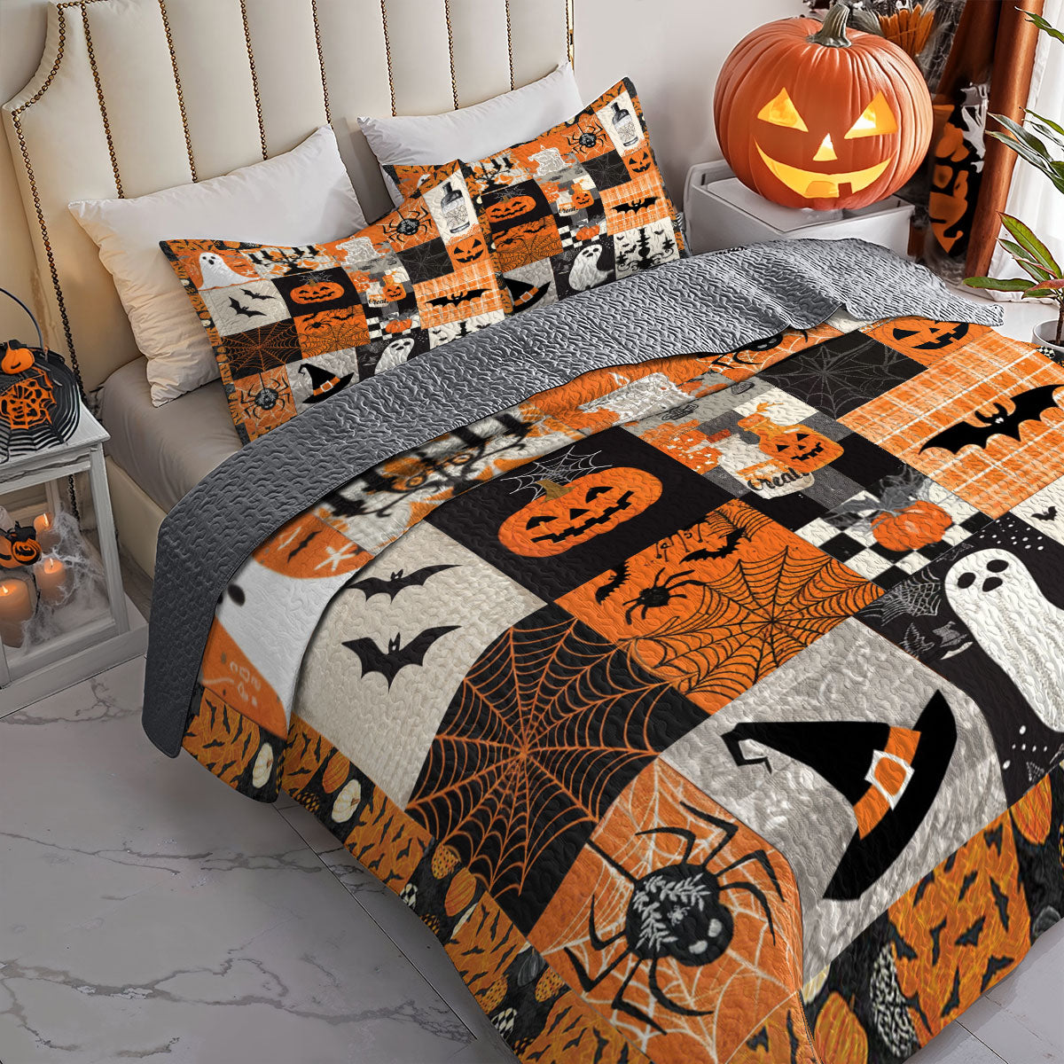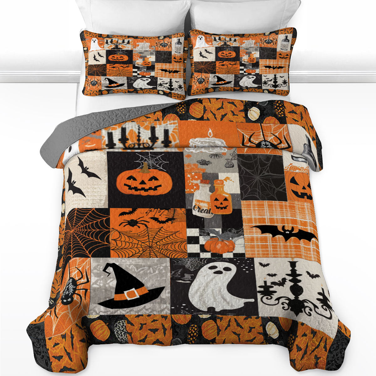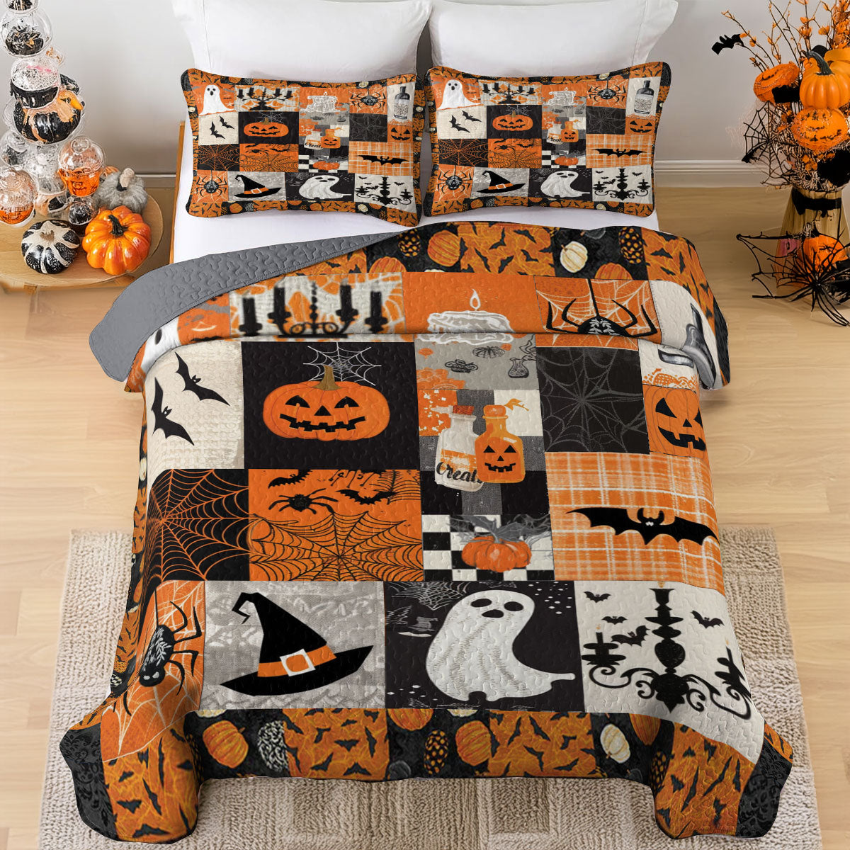 Shineful All Season Quilt 3-Piece Set Halloween Spooky Patchwork