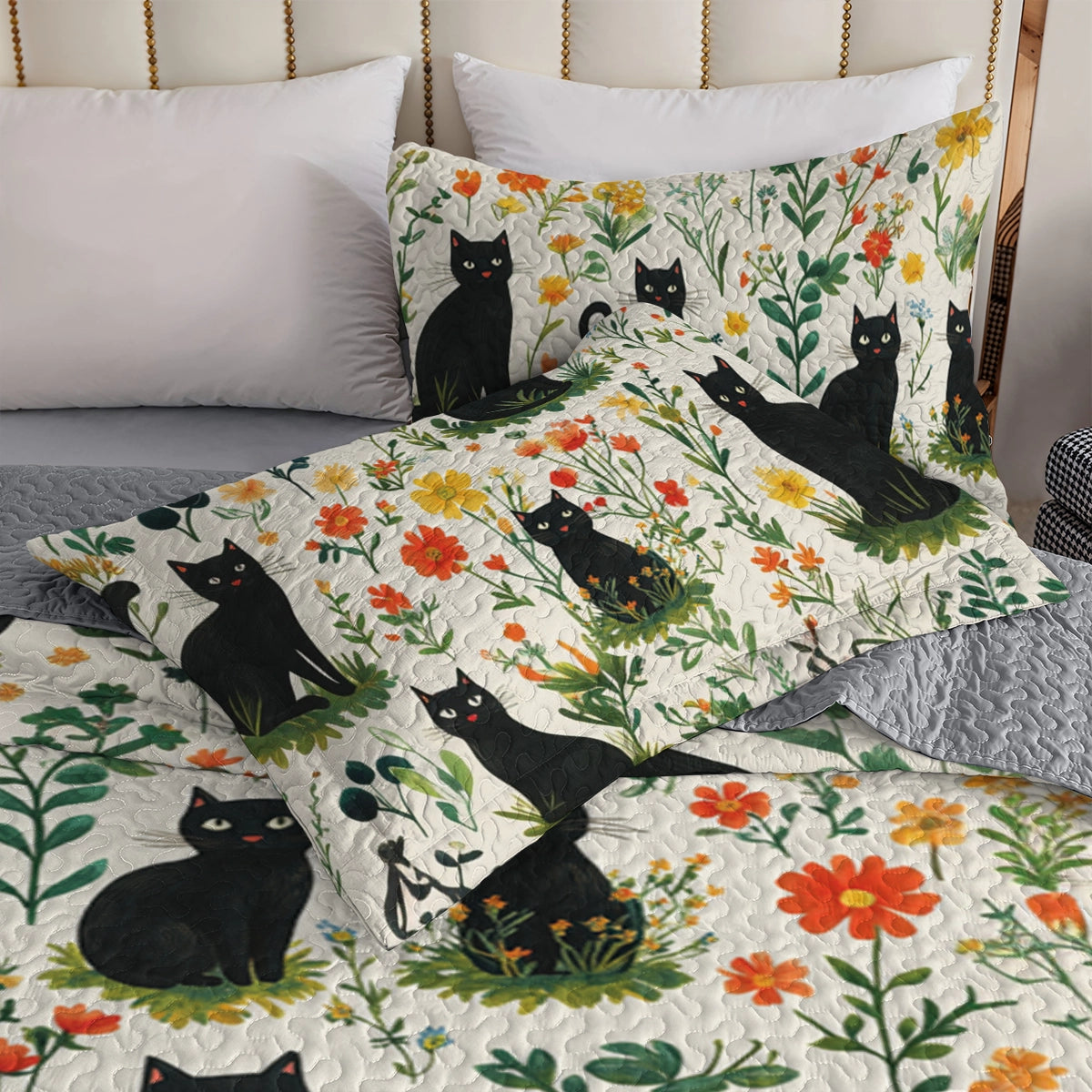 Shineful All Season Quilt 3-Piece Set Spring Cat