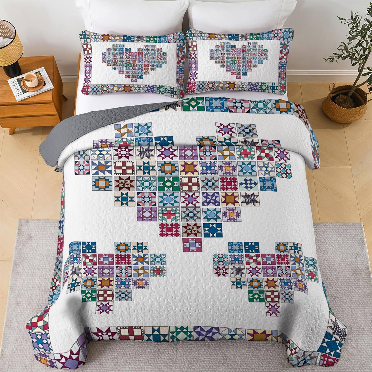 Shineful All Season Quilt 3-Piece Set Traditional Quilting Blocks Heart
