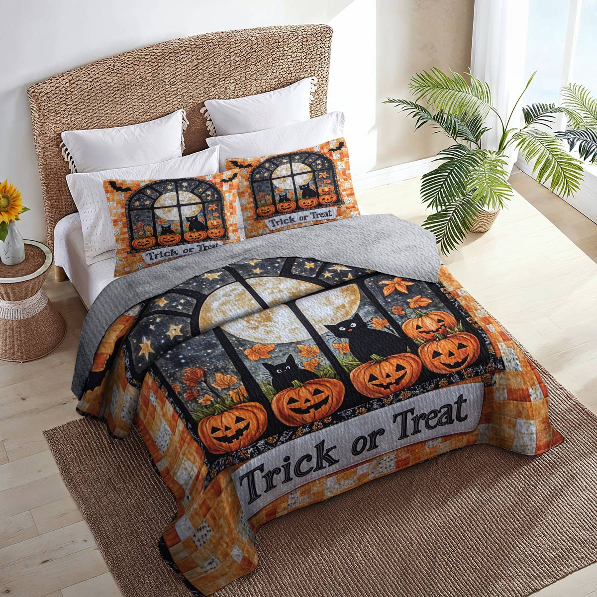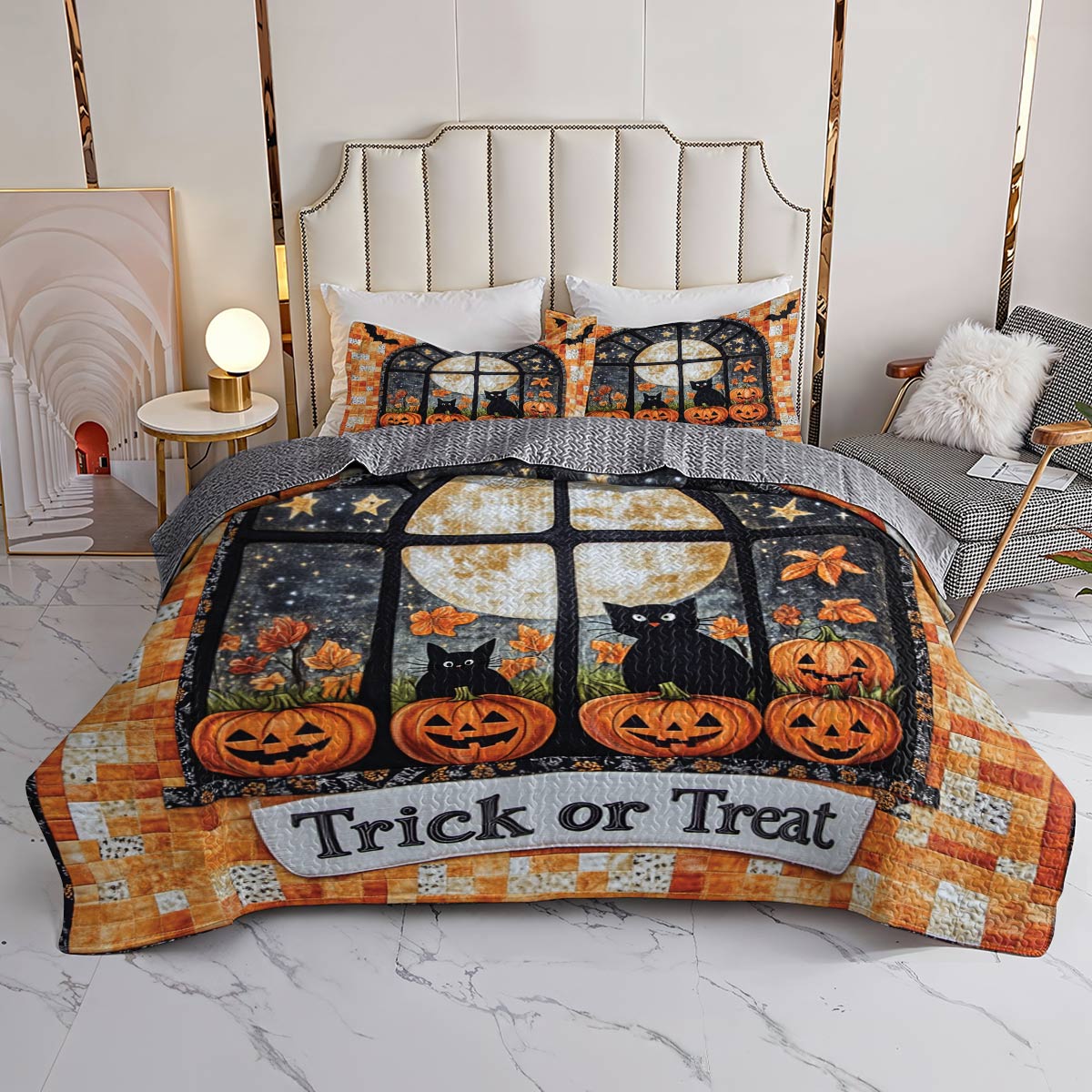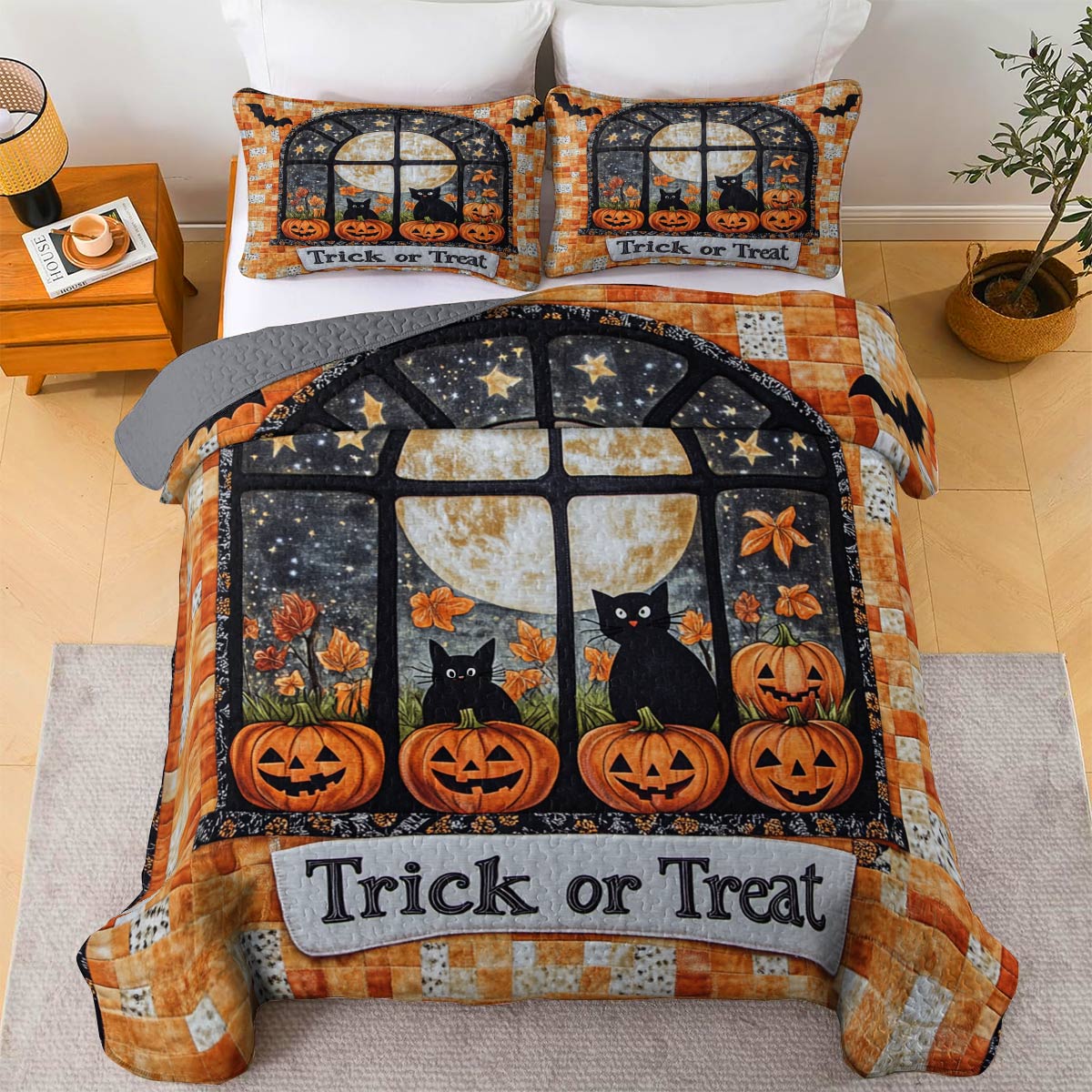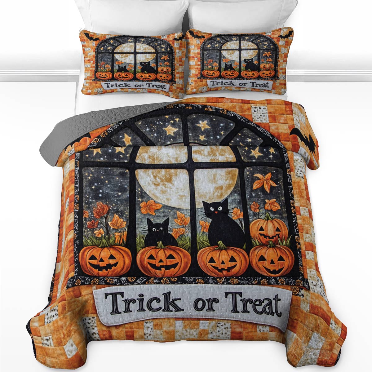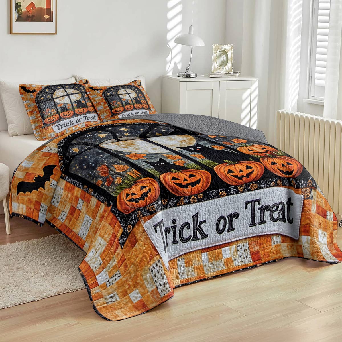 Shineful All Season Quilt 3-Piece Set Trick Or Treat Inside The Window