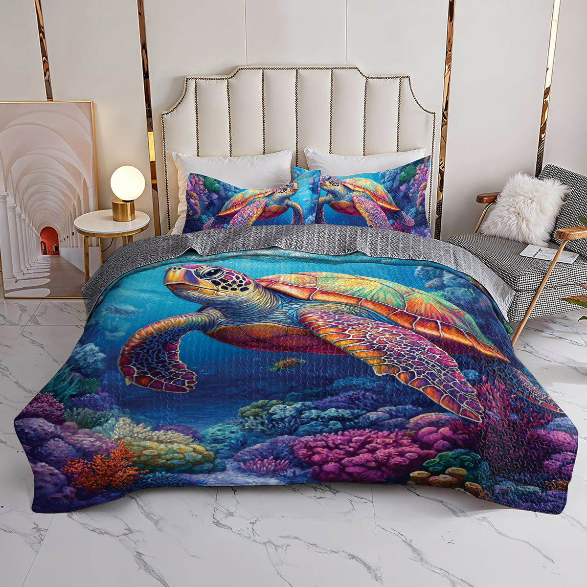 Shineful All Season Quilt 3-Piece Set Vibrant Sea Turtle