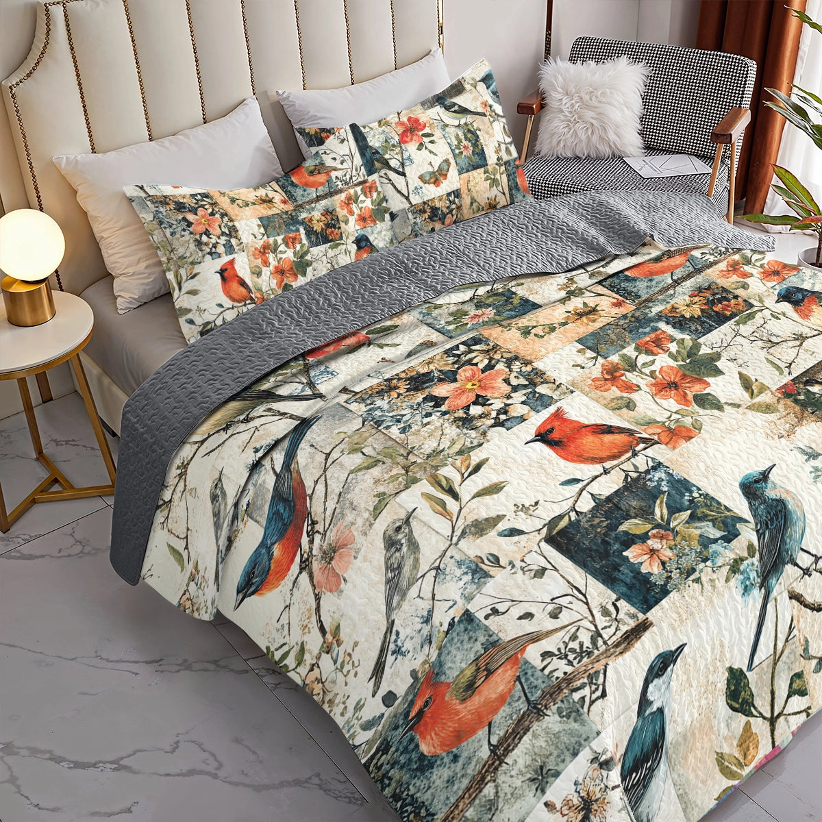 Shineful All Season Quilt 3-Piece Set Vintage Birdsong Bliss