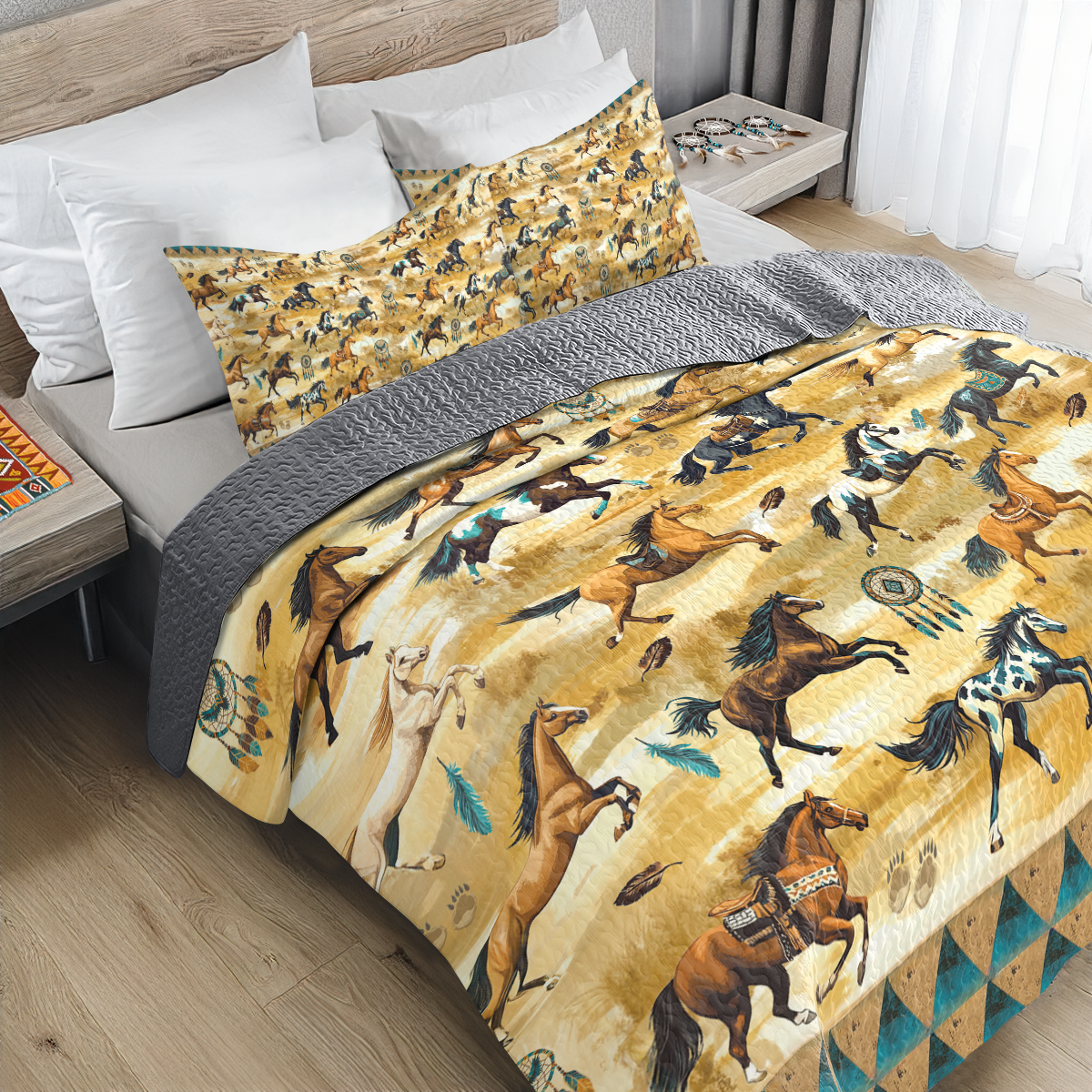 Shineful All Season Quilt 3-Piece Set Wild Mustang Spirits