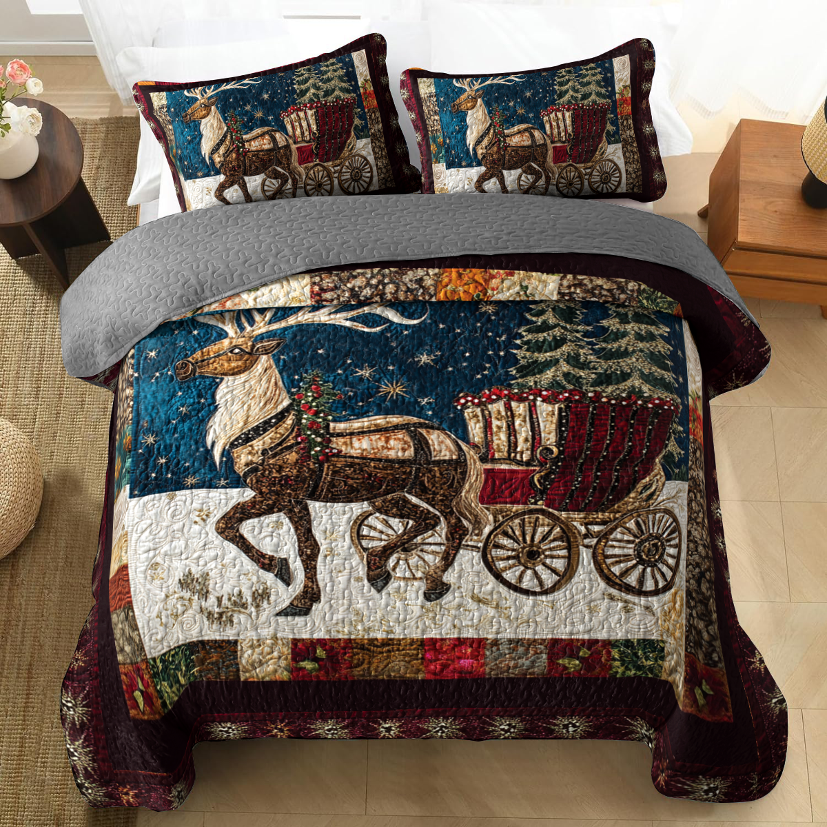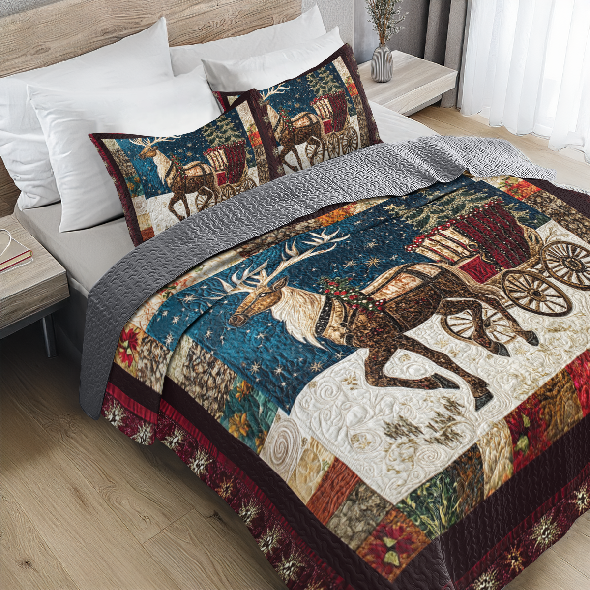 Shineful All Season Quilt 3-Piece Set - Winter's Journey: Reindeer Sleigh Ride