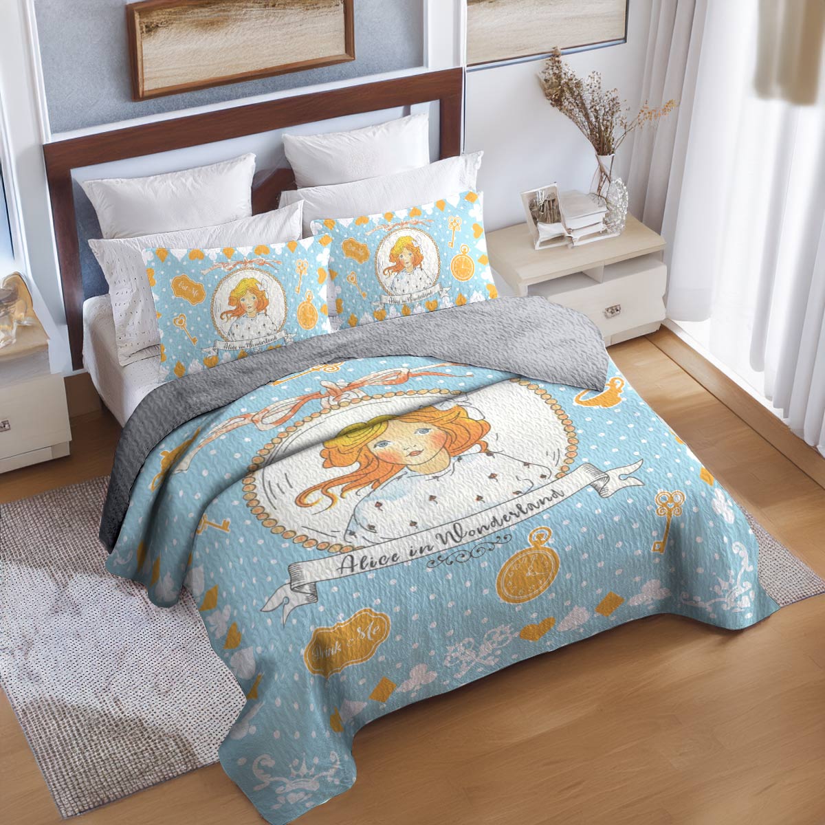 Transform your bedroom into a serene sanctuary with The Shineful Quilt Set. The rich, vibrant colors and unique artworks breathe new life into your space, while adding a touch of personality and timeless elegance. Crafted with attention to detail, each piece invites you to relax in style. This quilt set is more than just bedding—it’s a statement of comfort and sophistication. Let it elevate your bedroom and enhance every moment of rest