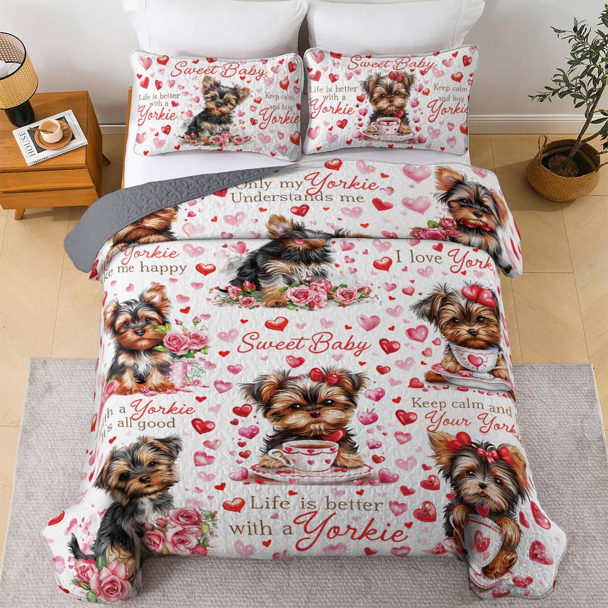 Shineful All Season Quilt 3-Piece Set Yorkie Baby