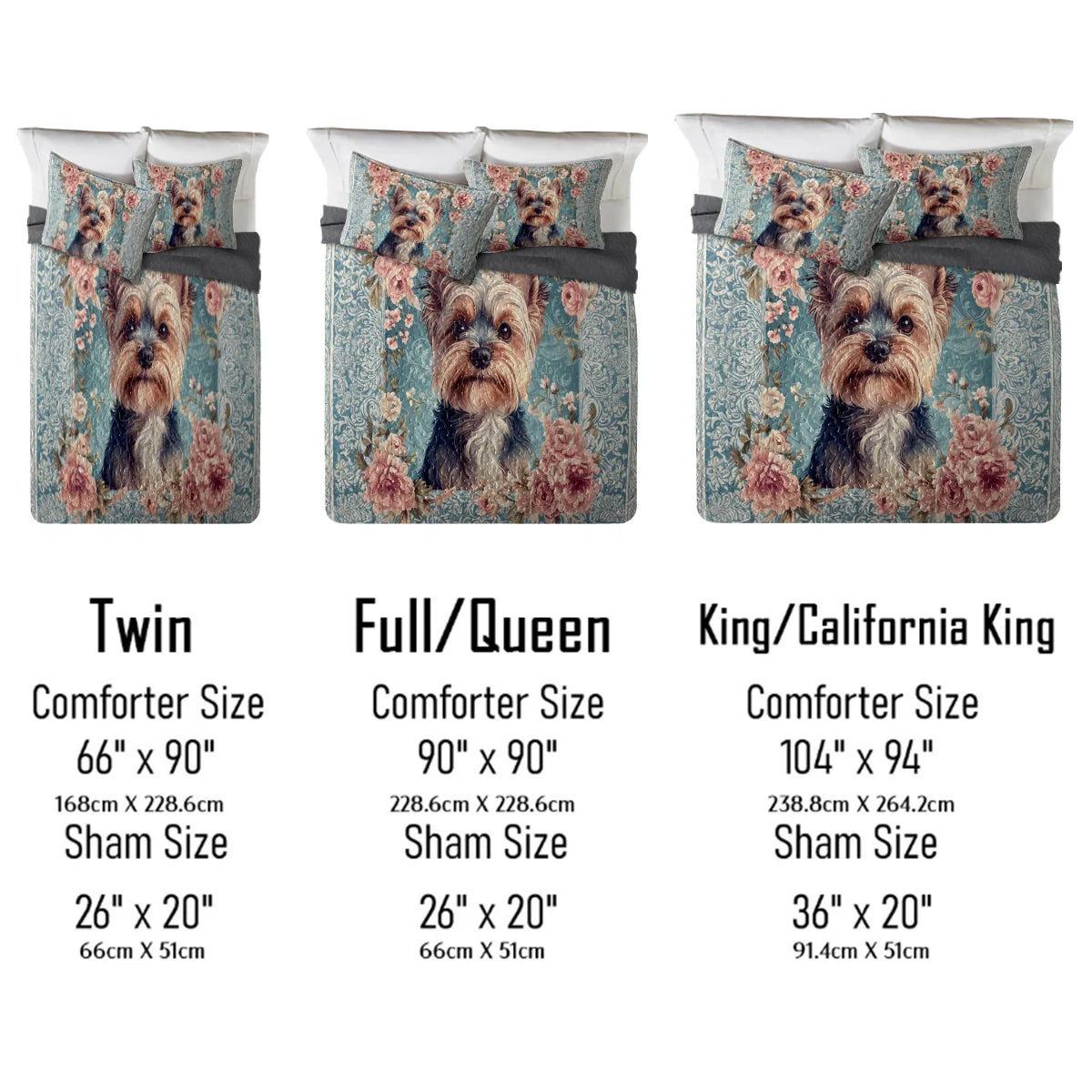 Shineful All Season Quilt 3-Piece Set Yorkie Rose Bloom Elegance